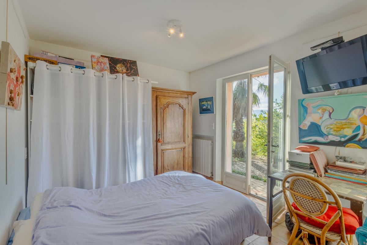 À l'étage, deux chambres dont une donnant sur une terrasse avec vue dominante, une salle de bain et d'un vaste dressing.