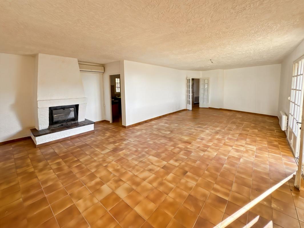 Le séjour, spacieux et lumineux, s'ouvre sur une belle terrasse ensoleillée bénéficiant d'un panorama dégagé, sans aucun vis-à-vis. Le terrain privatif de 2 420 m², parfaitement exposé, garantit calme, intimité et qualité de vie.