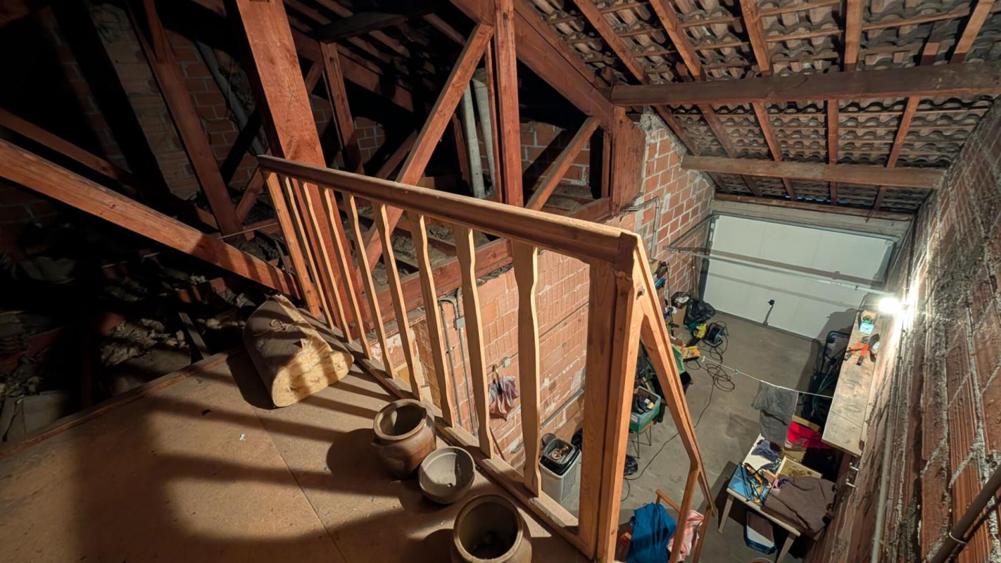 > Garage attenant de 18m² avec accès direct à la maison et possibilité de buanderie, avec à l'étage une mezzanine de stockage, et possibilité de créer 1 ou 2 pièces-chambres sous comble.