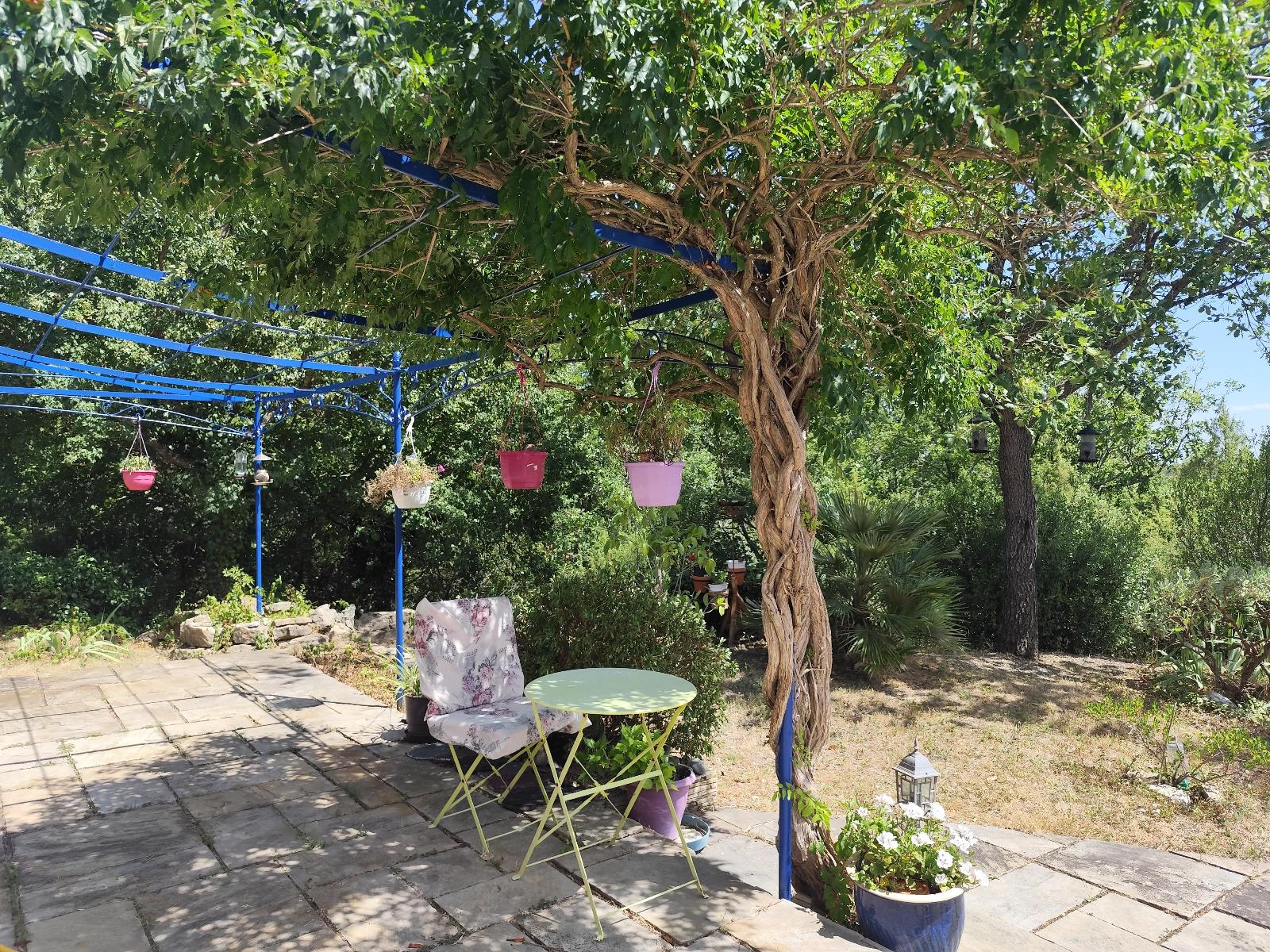 A l'extérieur : une piscine 5x10, un grand terrain avec nombreux oliviers, un atelier pour un espace bricolage ou rangement.