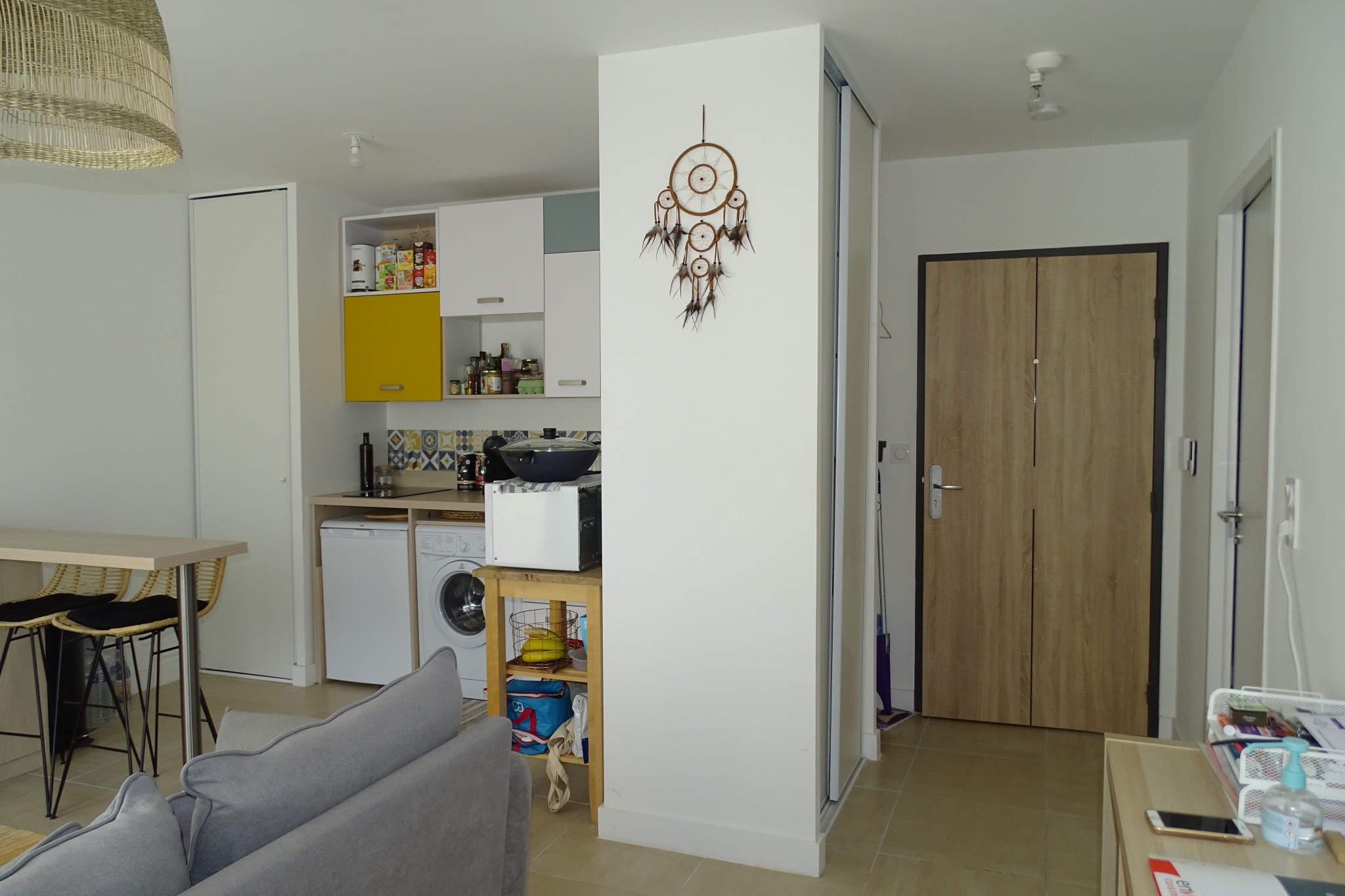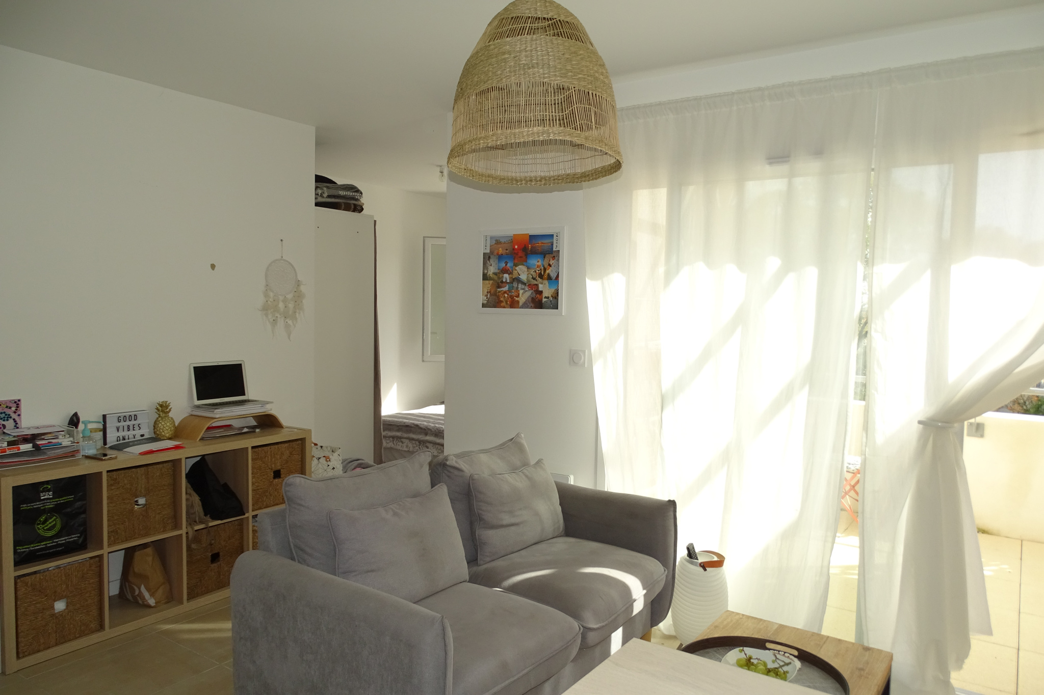 Dans un environnement privilégié au sein d'une résidence de 2018, au 2ème et dernier étage sans ascenseur lumineux appartement de type P1 composé d'une agréable pièce à vivre avec cuisine entièrement aménagée et semi-équipée ouverte sur une belle terrasse. Espace nuit et salle d'eau avec wc.