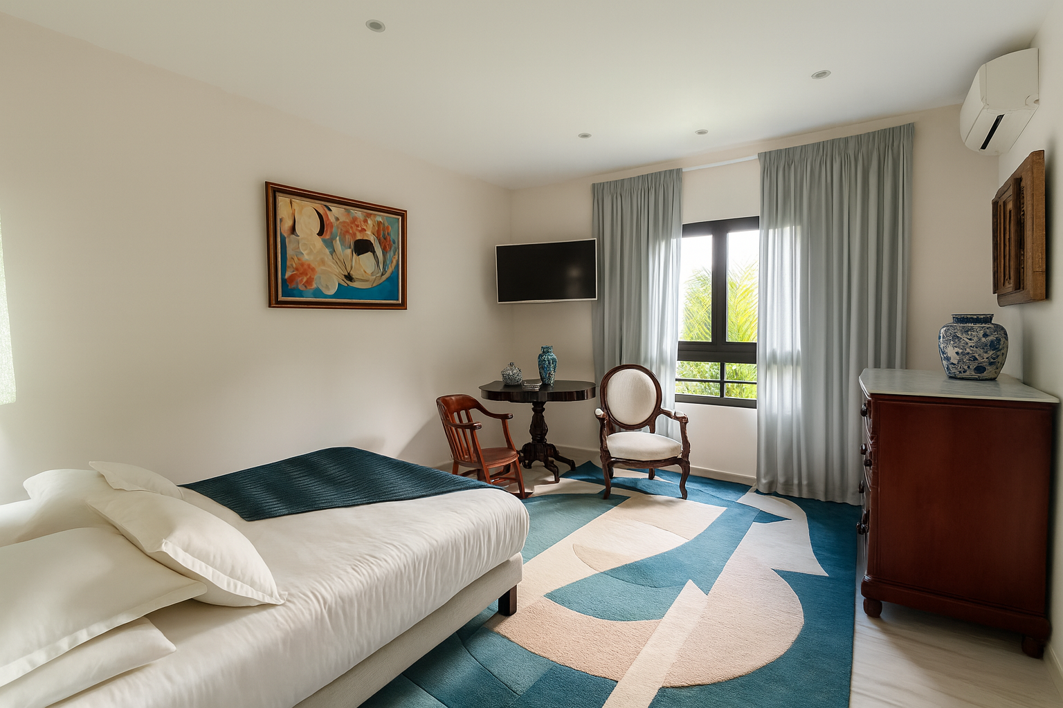 À l'extérieur, le magnifique jardin paysagé, entièrement clôturé et accessible par un portail électrique, assure intimité et sécurité. L'ensemble du terrain met en valeur la villa et renforce la sensation d'espace et de tranquillité.
