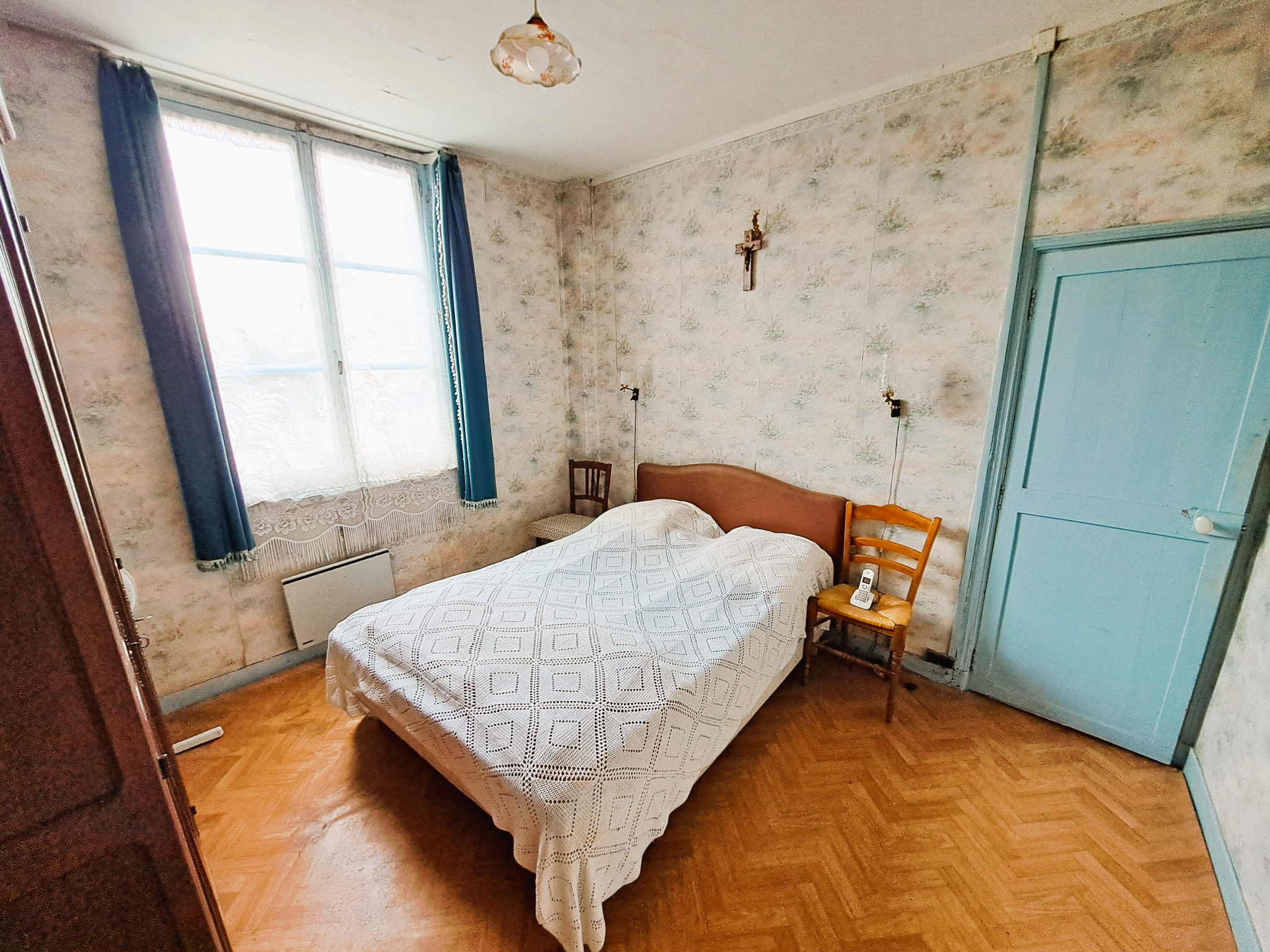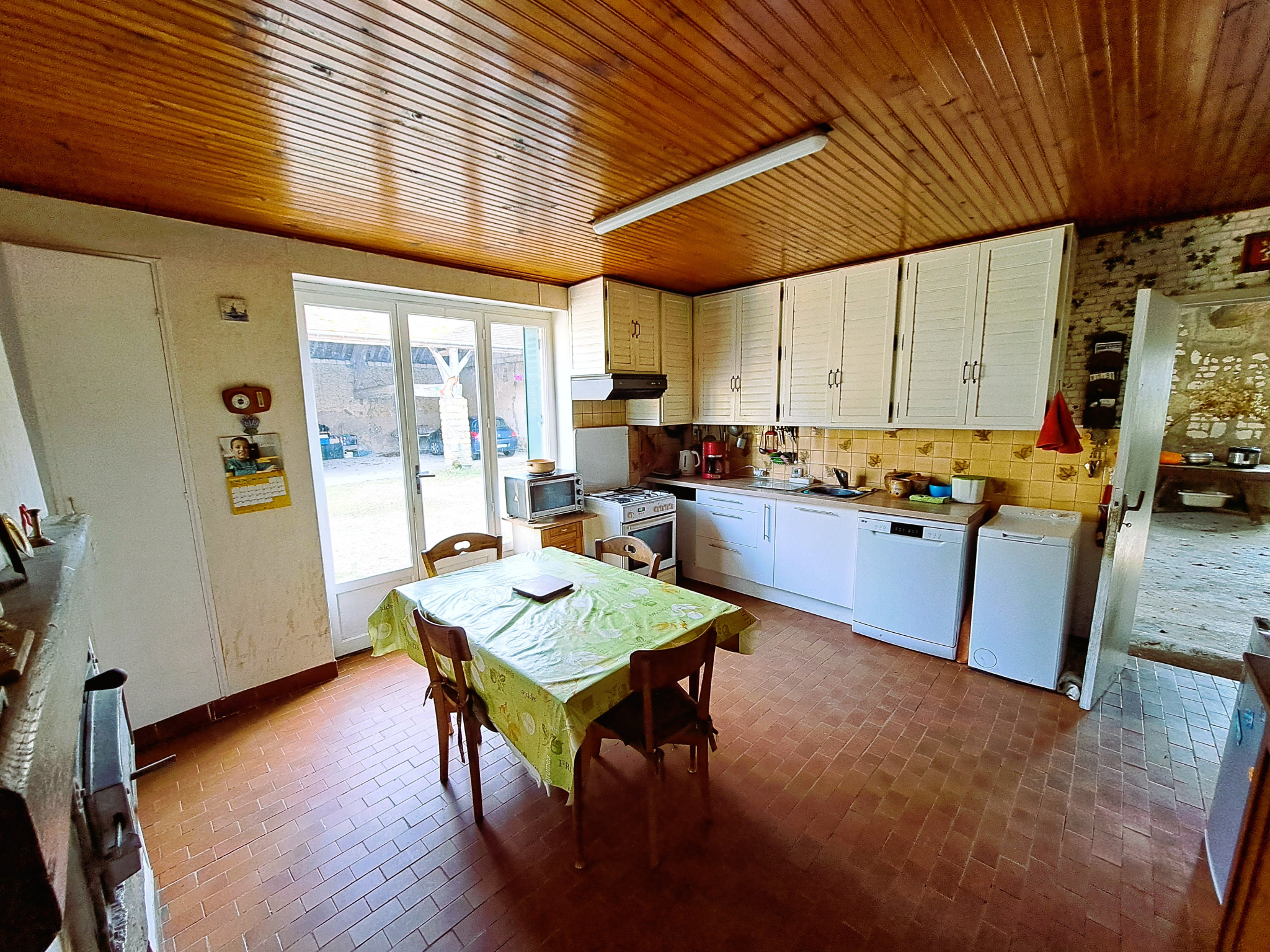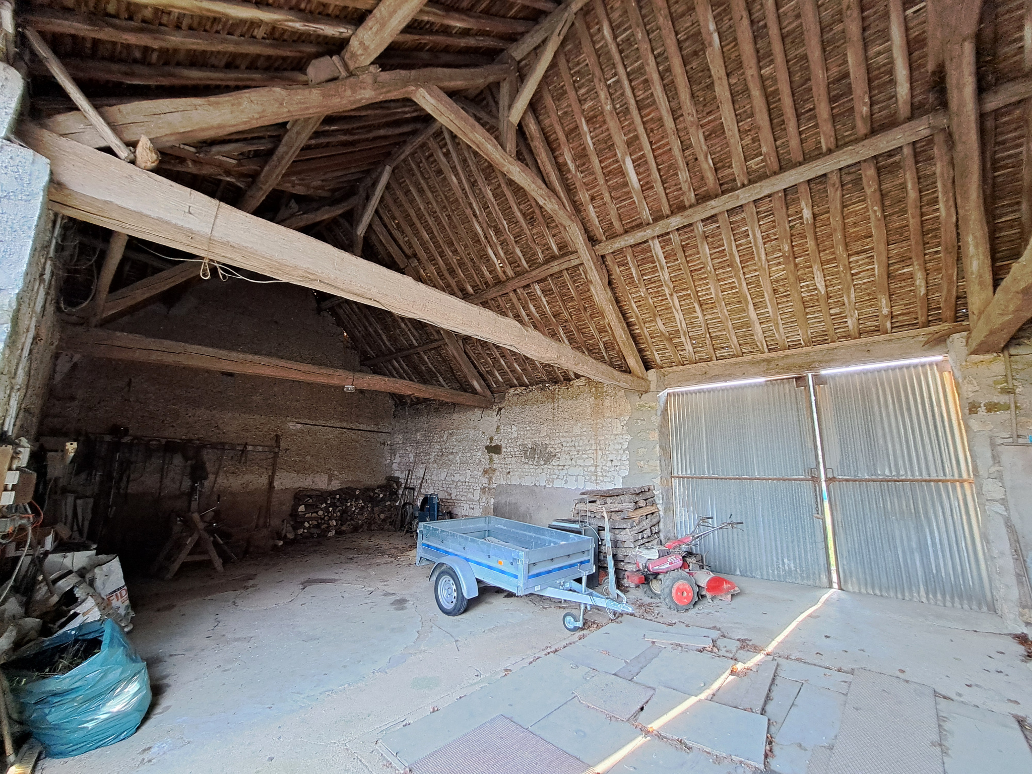 Cette belle longère à rénover, pleine de charme, propose : au RDC : entrée, cuisine aménagée 20 m2, salle à manger de 21 m2 (avec poêle à bois récent) ouverte sur salon de 11 m2, chambre de 11,5 m2, deuxième salon de 13 m2, salle d'eau, wc séparés, dégagement avec placards... et accès à une belle grange avec une grande pièce de 50 m2 (et son étage aménageable). A l'étage, la maison dispose de trois grandes chambres (17 - 17 et 16 m2) et d'un grenier d'environ 38 m2. Chauffage électrique et bois. Simple vitrage et survitrage. Tout à l'égout. Deux belles caves. Puits.Travaux d'isolation et d'électricité à prévoir. Face à la longère, la propriété est complétée par une grande grange de 53 m2 et une dépendance attenante de 28 m2, le tout avec un grand étage de 85 m2. A cela s'ajoute un garage de 54 m2, une autre grange de 119 m2 avec une fosse, et un wc indépendant. Sur un terrain plat d'environ 1920 m2 avec une grande cour et un jardin arboré.