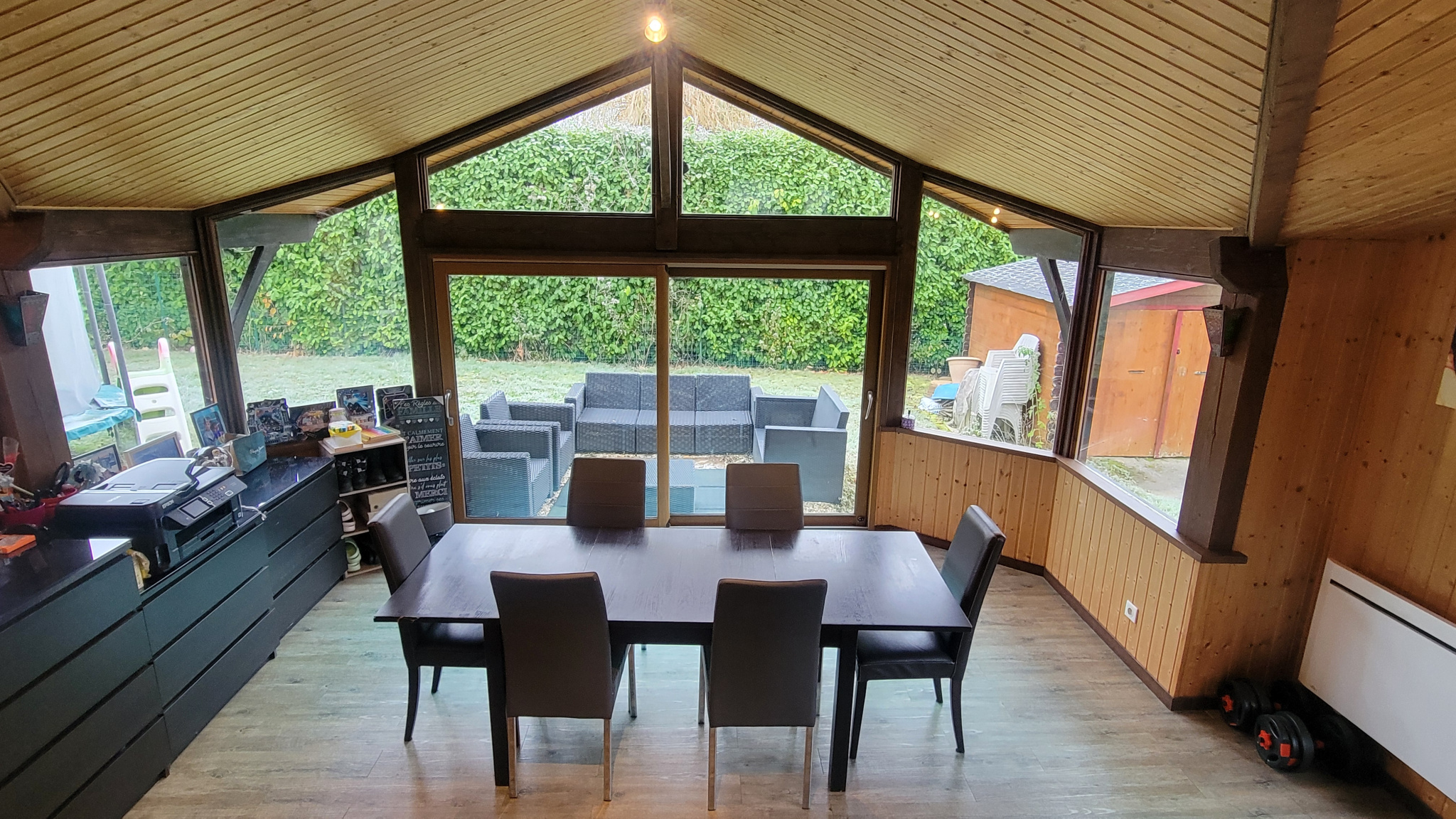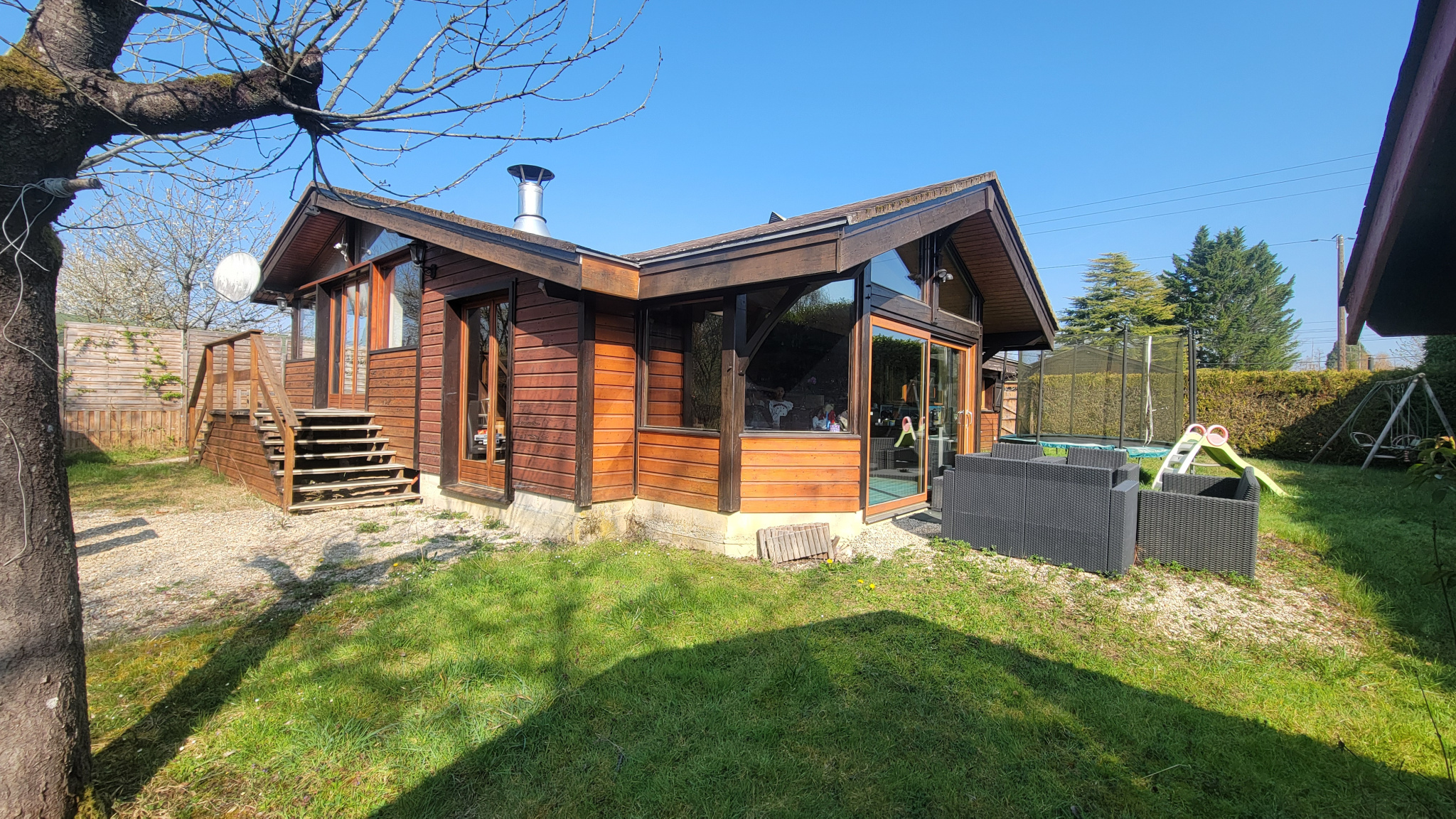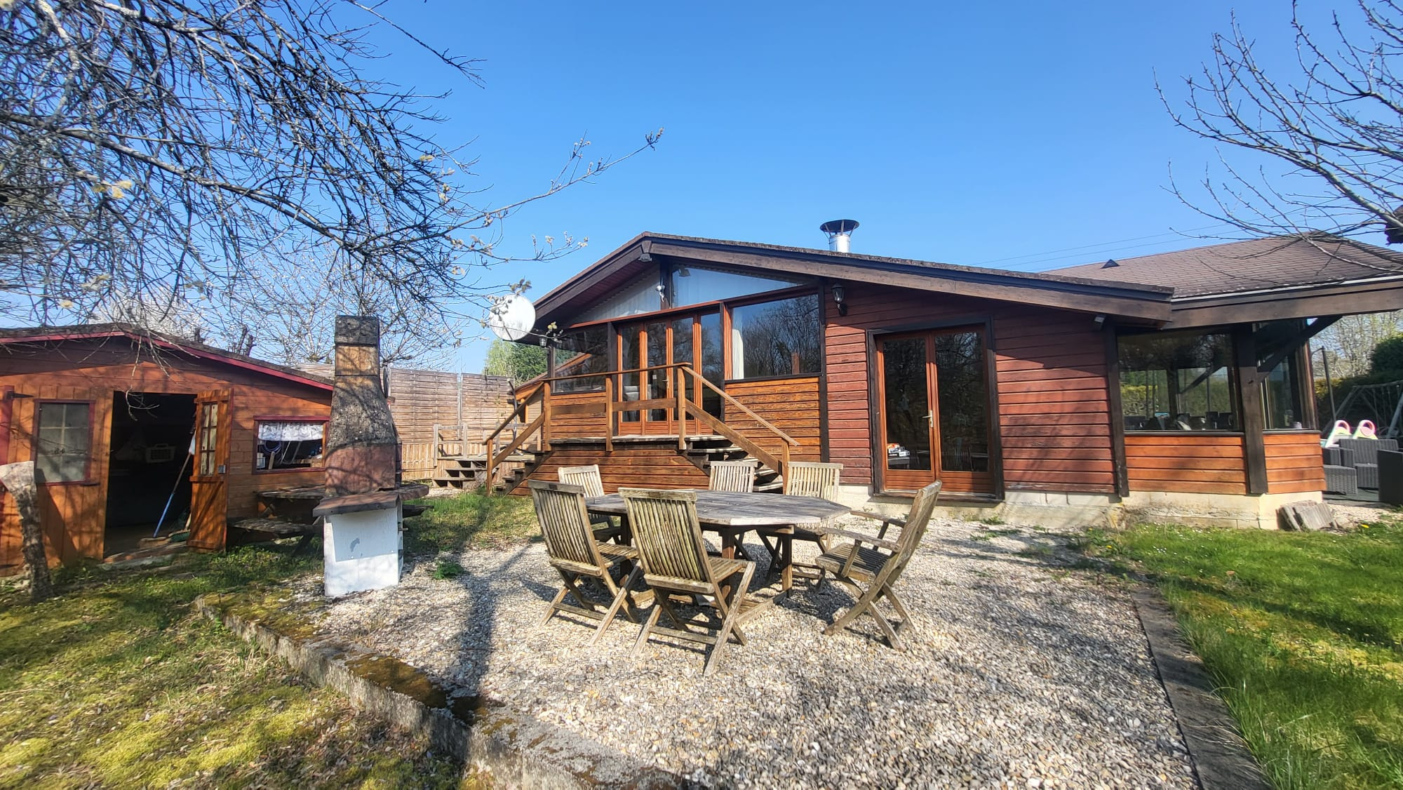 AHV Immobilier vous propose de découvrir dans un environnement privilégié ce chalet en bois d'environ 130m2, alliant authenticité et confort moderne. Il se compose d'une entrée, cuisine ouverte sur un espace repas baigné de lumière, salon avec cheminée, salle d'eau avec douche et baigoire, WC, trois chambres dont une avec terrasse, bureau. Jardin clos avec cabanon.
