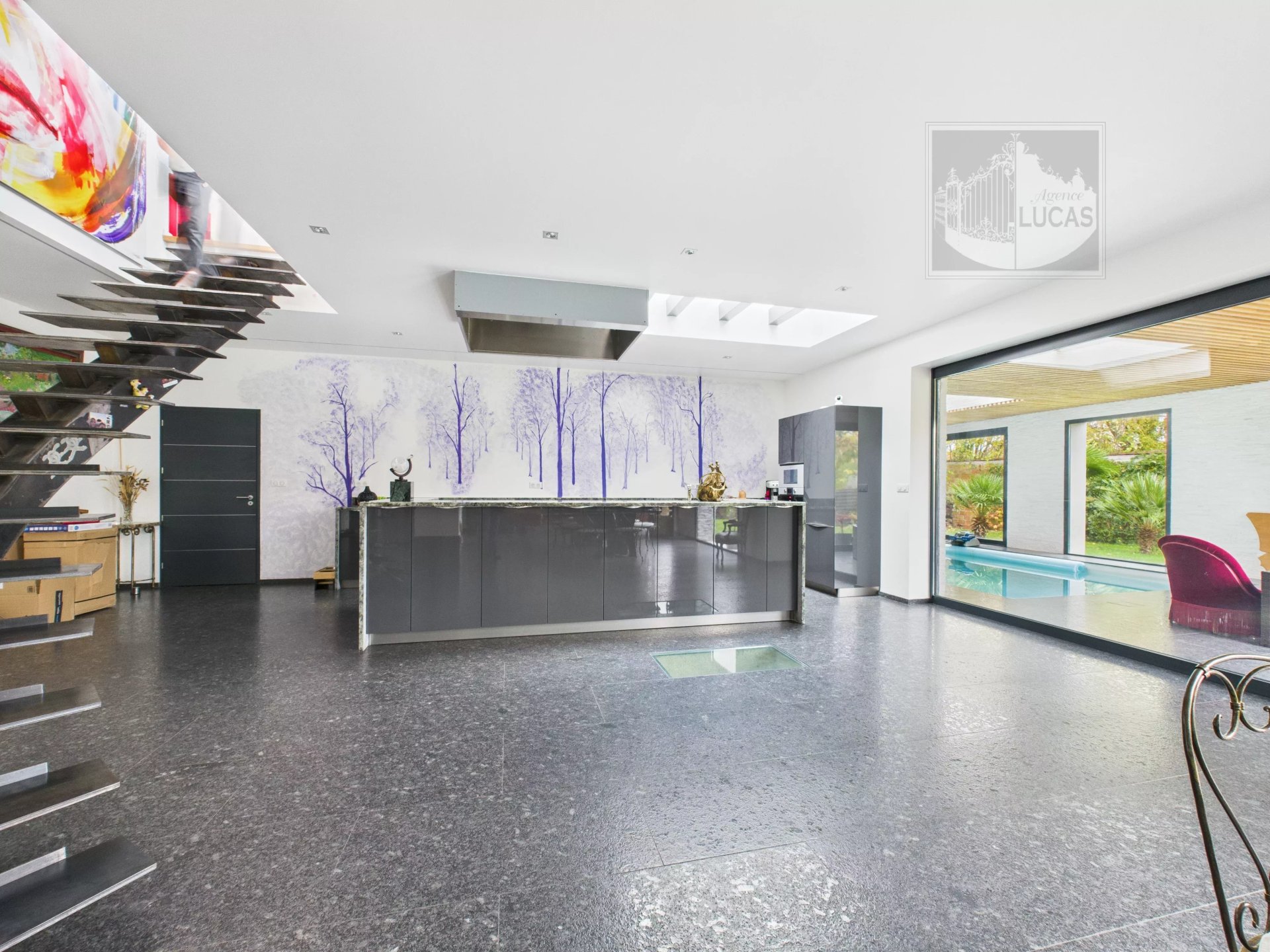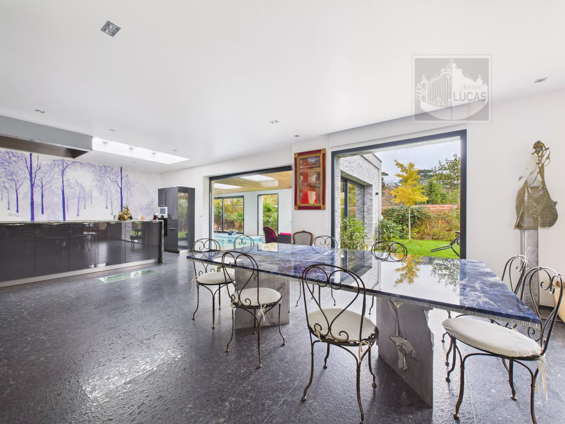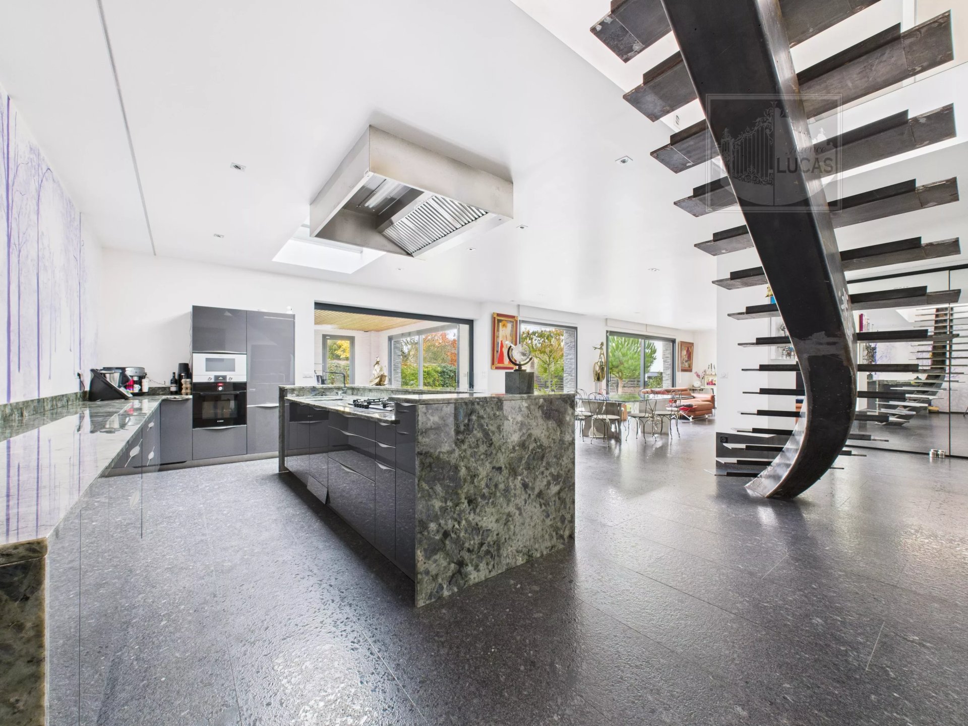 • Réception : vaste pièce de vie de 76 m² baignée de lumière, avec cuisine haut de gamme et sol en granit Labrador