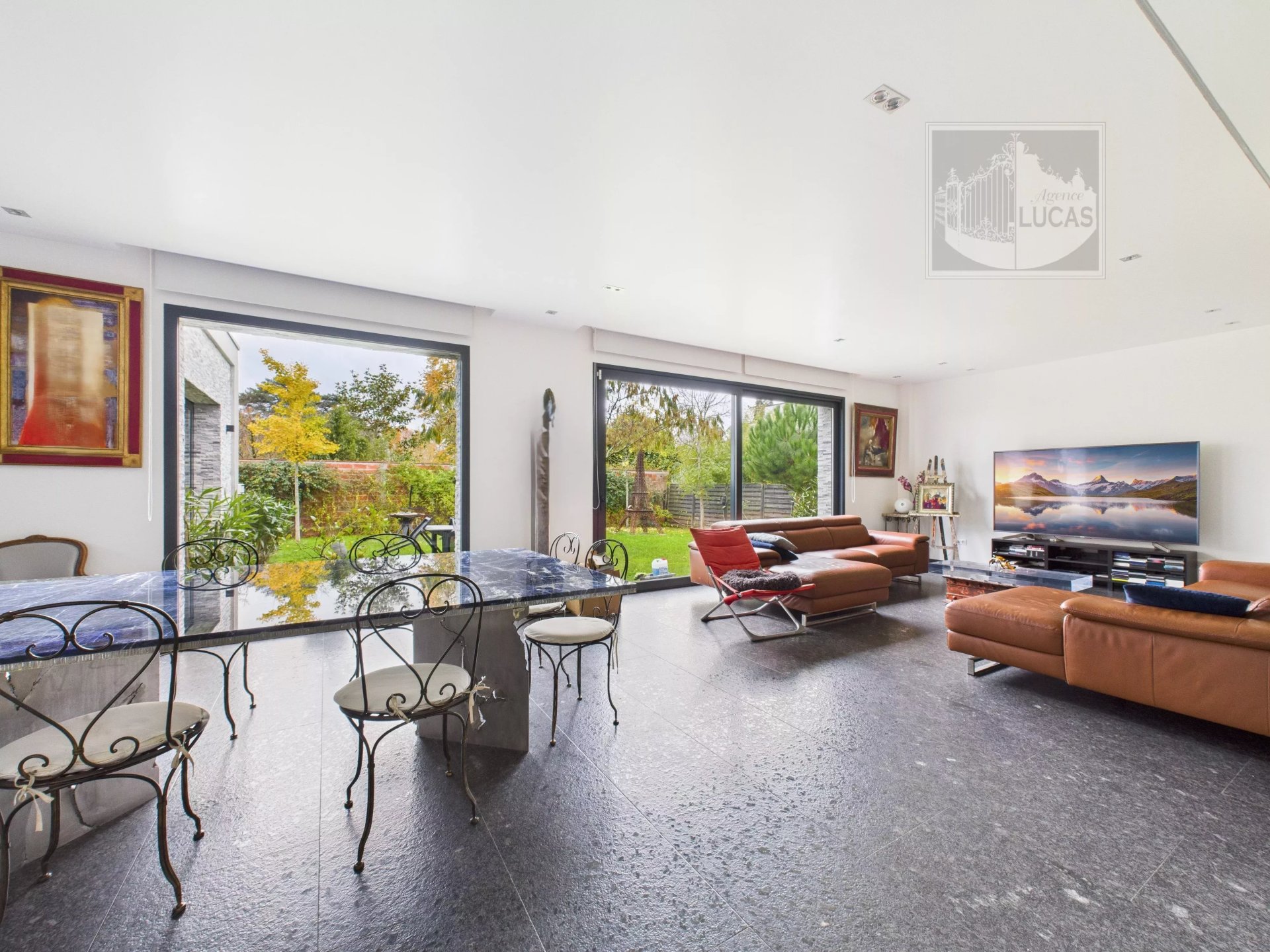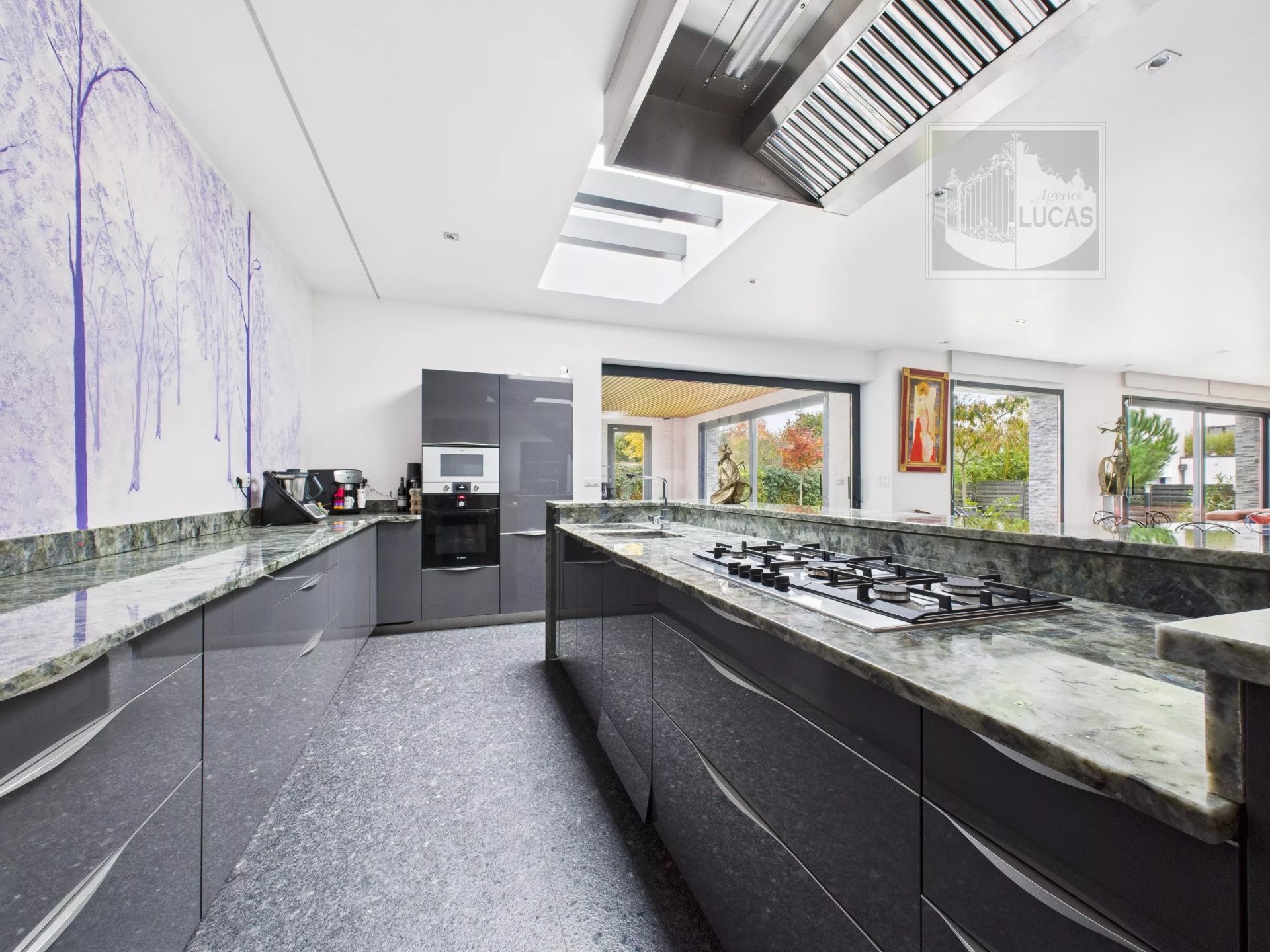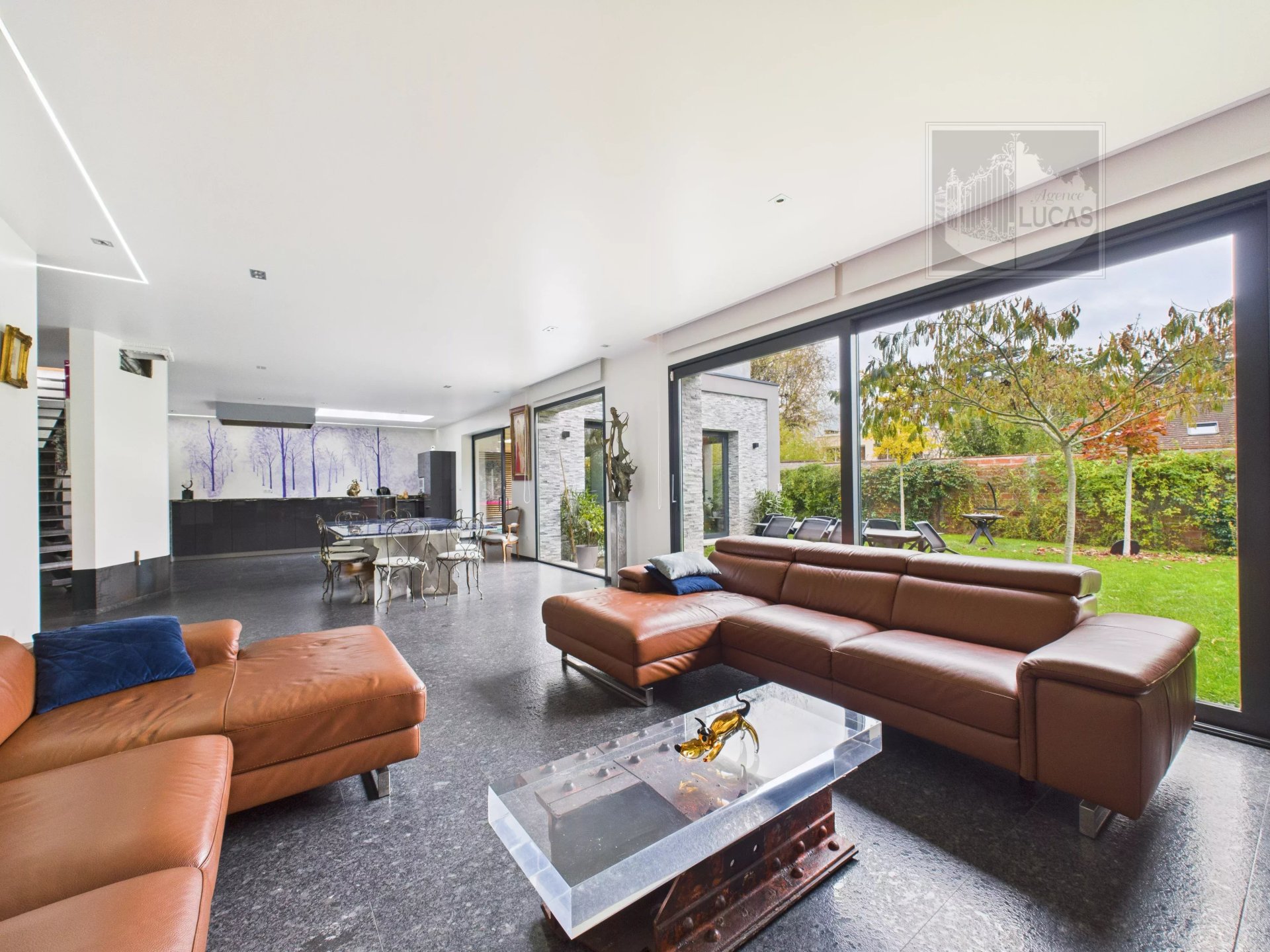 • Réception : vaste pièce de vie de 76 m² baignée de lumière, avec cuisine haut de gamme et sol en granit Labrador