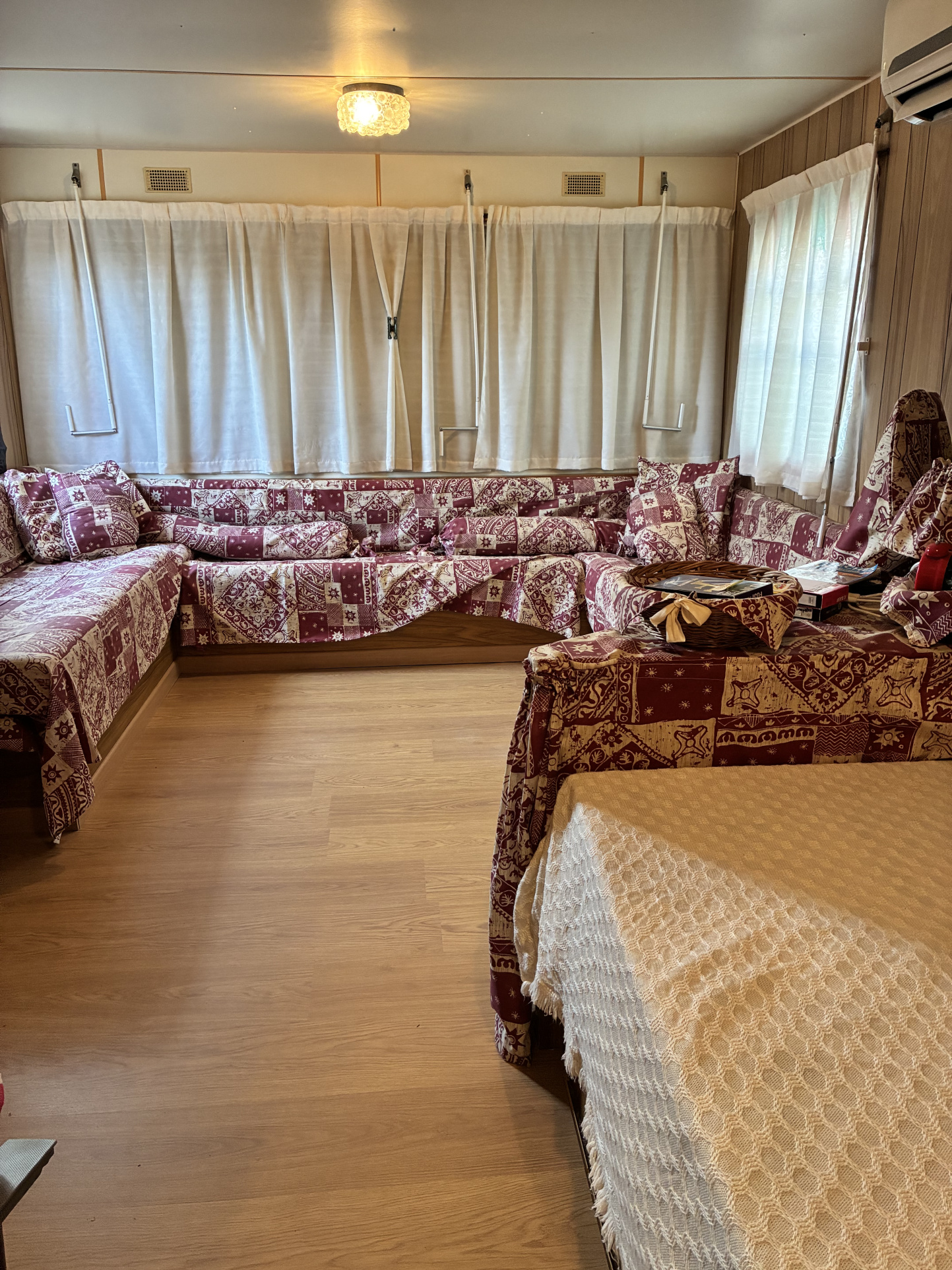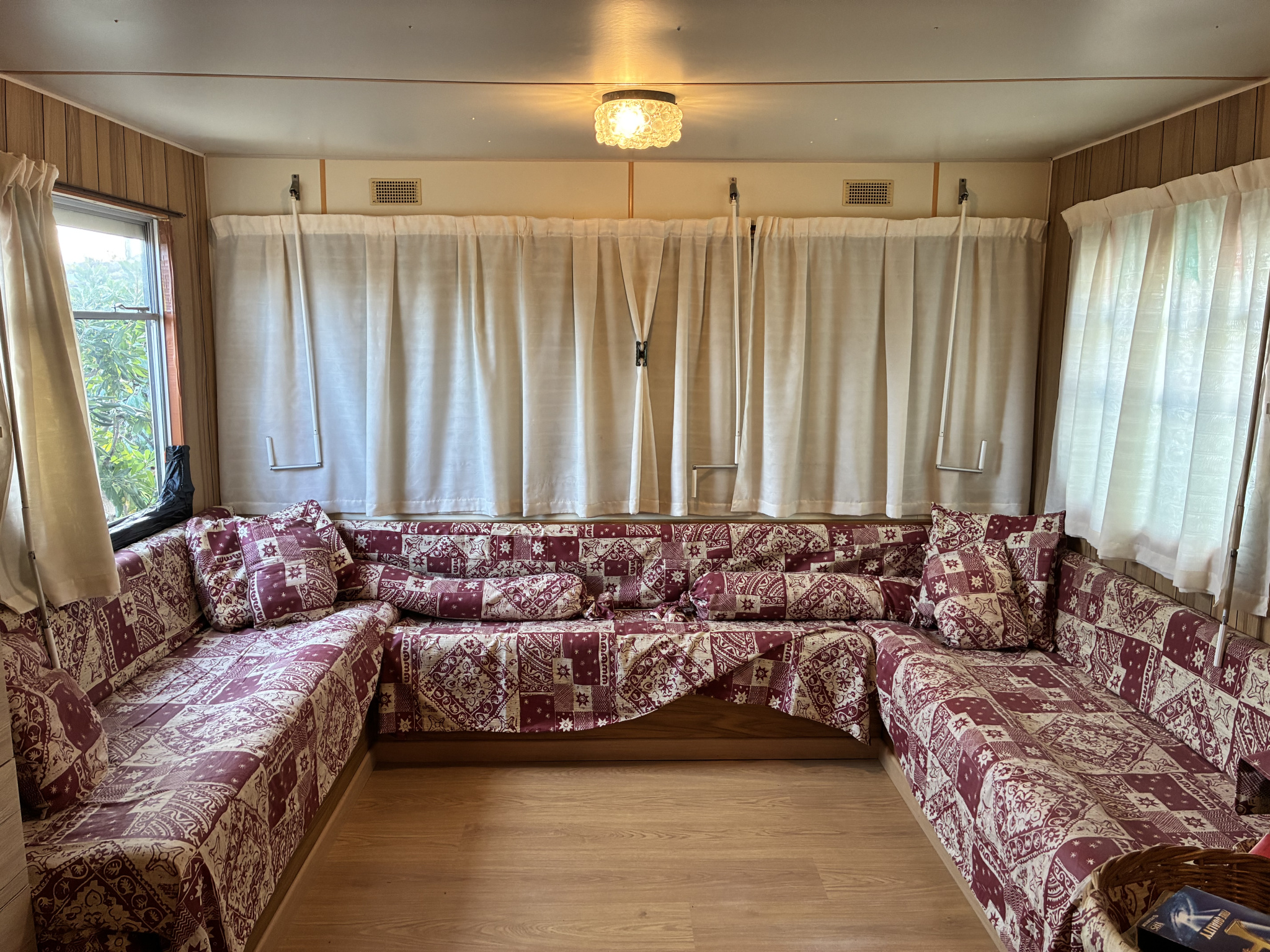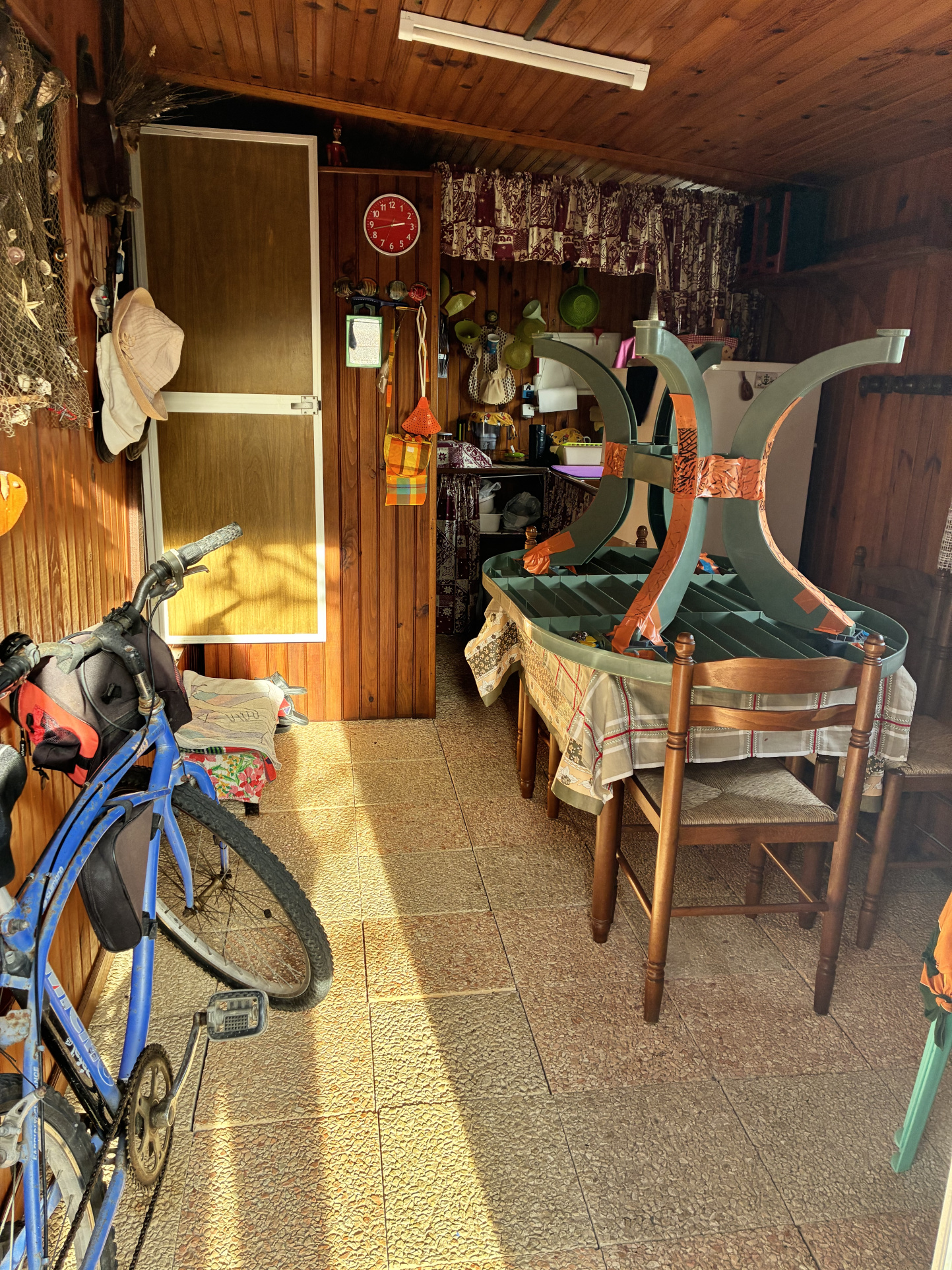 Il se compose d'une cuisine en dur avec coin repas, une chambre, salon avec banquette, une salle d'eau avec wc et un cellier /ou cabine.