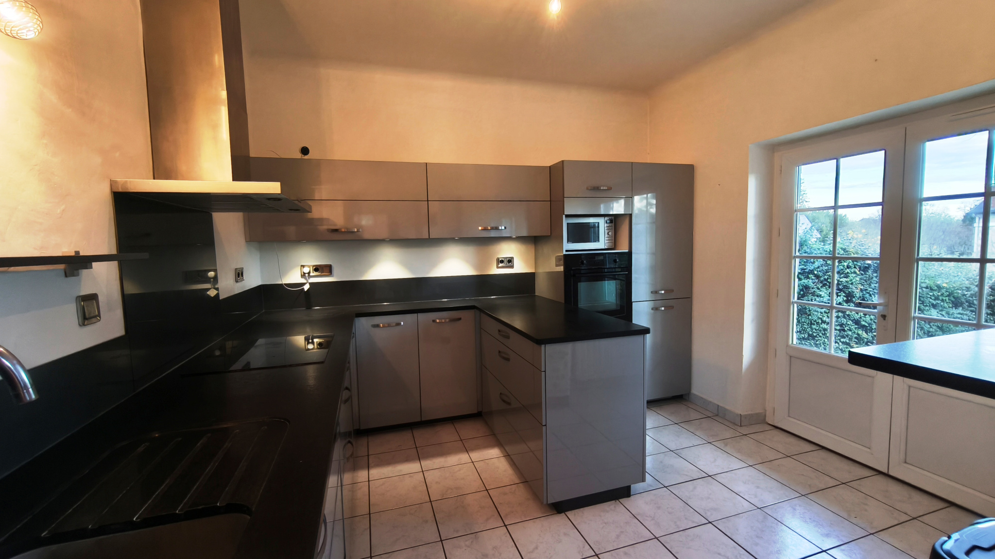 A proximité immédiate du bourg, dans un quartier au calme, cette vaste maison de 167 M2 habitable est composée d'un beau séjour avec coin cuisine équipée, quatre chambres, salon, une salle d'eau, 2 wc et un garage. Une belle terrasse donnant sur un jardin plat et clos d'environ 1300 M2.