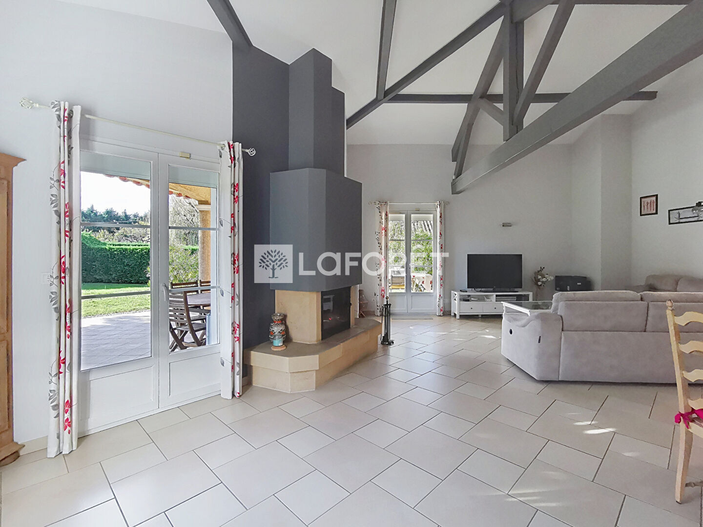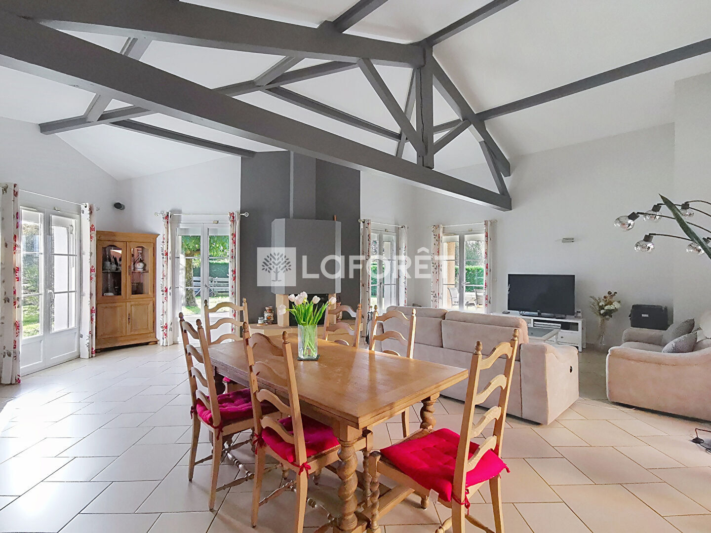 Vous serez séduit dès l'entrée par un vaste hall menant à une pièce de vie chaleureuse, sublimée par sa charpente apparente et sa cheminée à foyer fermé, idéale pour les soirées d'hiver.