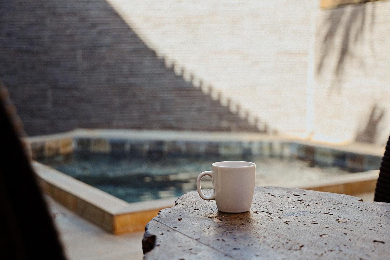 Le séjour s'ouvre sur une piscine et un Jacuzzi.