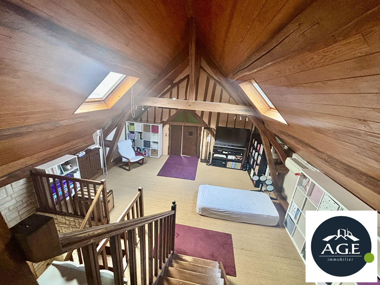 Superbe mezzanine de très grande taille et belle hauteur sous plafond pouvant servir de salle de jeux, espace télétravail ou salon secondaire, 3 chambres et bureau.