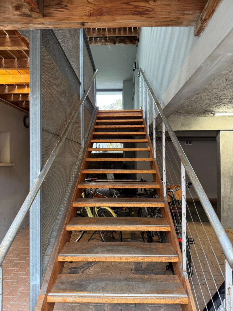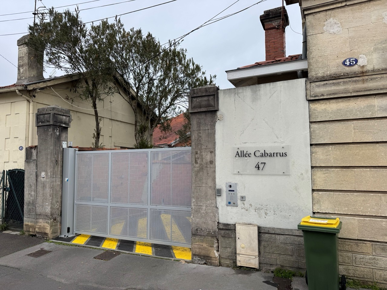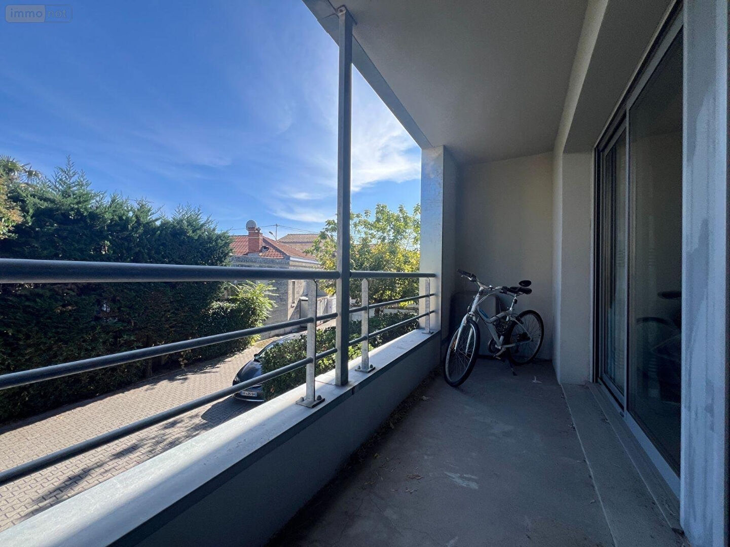 Une spacieuse entrée desservant une vaste pièce de vie avec cuisine aménagée donnant sur une terrasse exposée EST et avec une vue dégagée sur les toits de Bordeaux. L'environnement est paisible et très calme. Une place de parking privative couverte est vendue avec le logement.