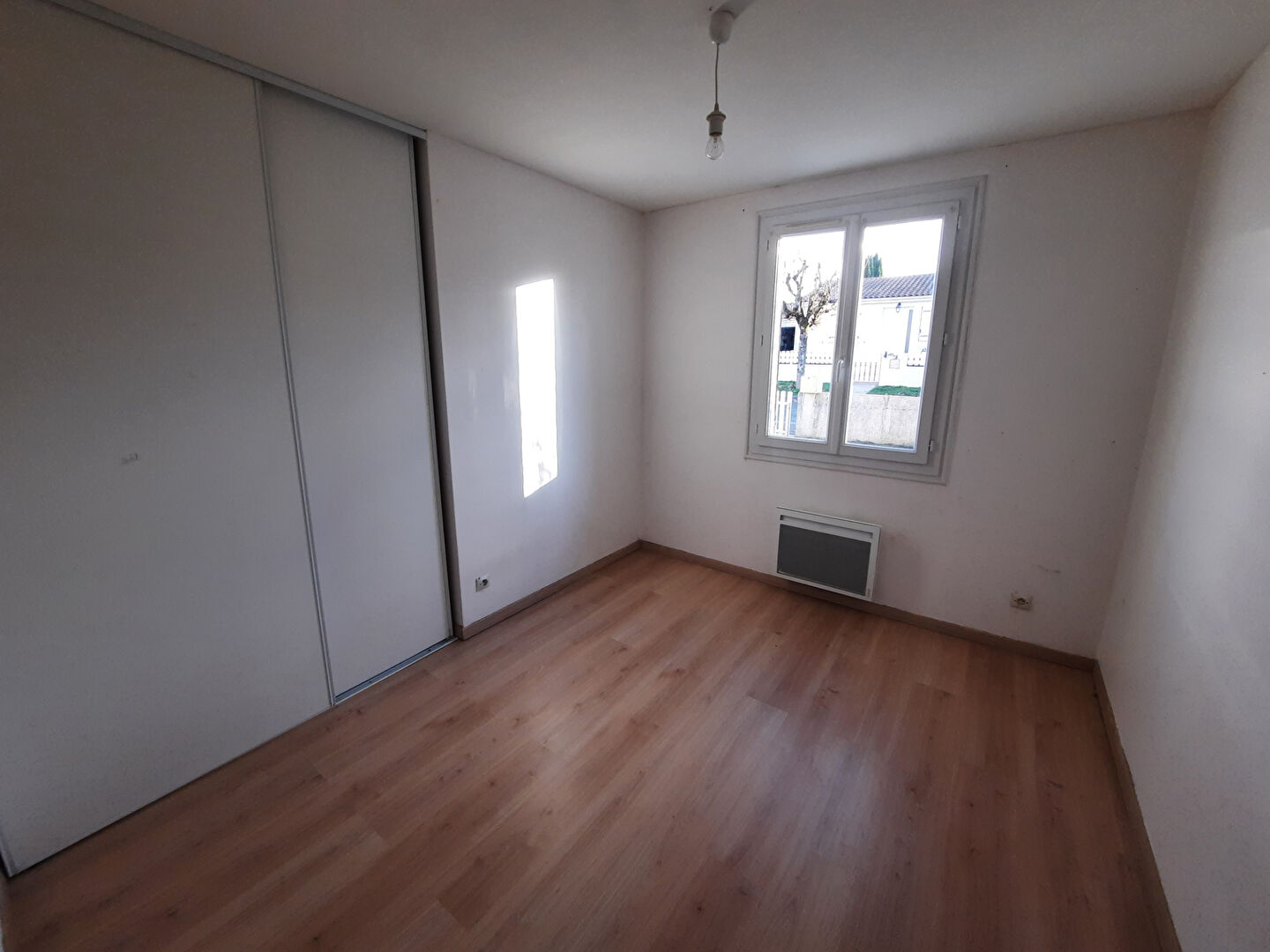 Maison de plain pied de 90m2 de surface habitable offrant une entrée avec placards, une pièce de vie lumineuse, une cuisine indépendante attenante à la pièce de vie, trois chambres dont une avec placards, une salle de bains et un wc indépendant.