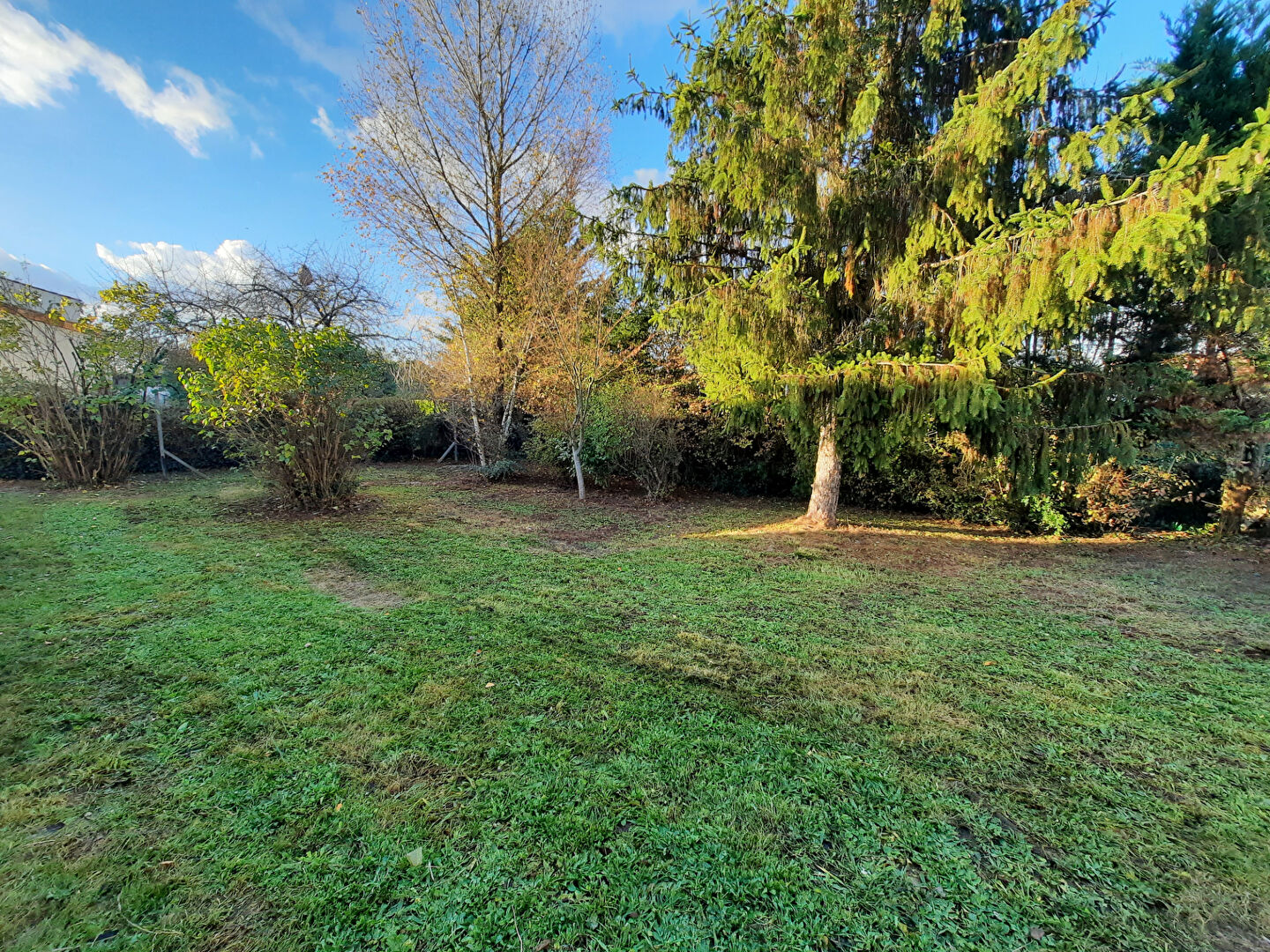 Garage, jardin arboré et clôturé.