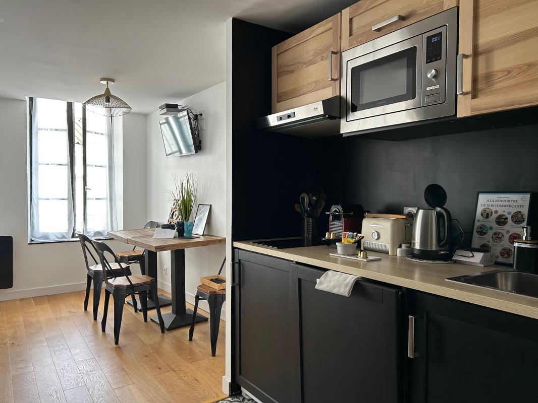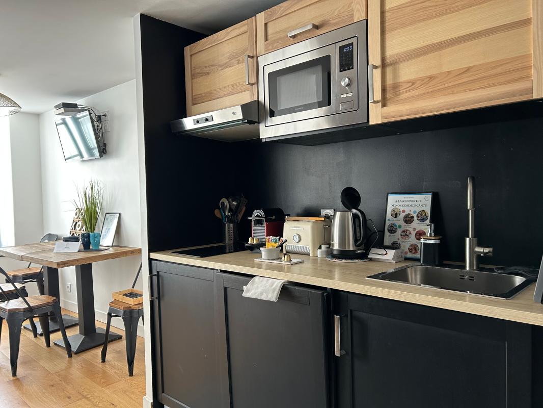 Au premier étage, vous trouverez une seconde pièce avec kitchenette, un coin nuit cocooning et une salle d'eau avec WC, parfaite pour accueillir voyageurs, étudiants ou locataires à l'année.