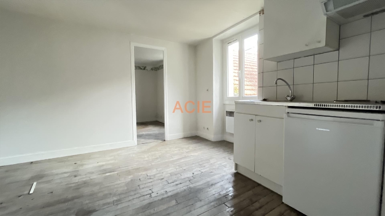 Salon, cuisine ouverte, une chambre, salle d'eau avec wc.