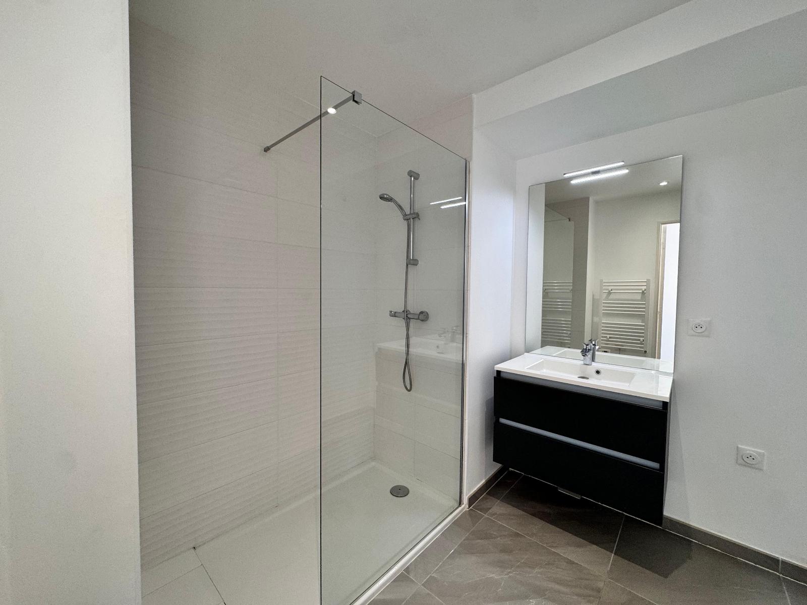 . Salle d'eau raffinée, équipée d'une douche à l'italienne et d'un mobilier moderne