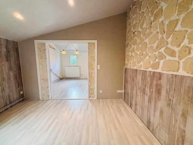 À l'étage, la partie nuit se compose de trois chambres confortables de 9,06 m², 11,86 m² et 10,28 m², d'une salle de douche moderne ainsi que de WC séparés. À l'extérieur, vous pourrez profiter d'un agréable espace avec une piscine, parfaite pour les journées ensoleillées.