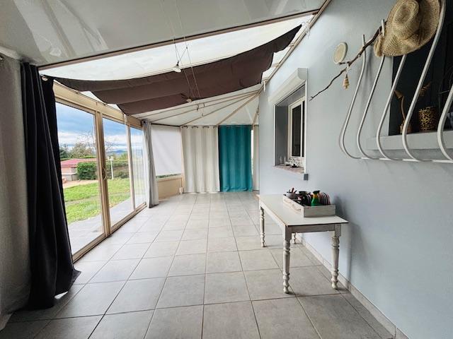 Une véranda d'environ 20 m² vient compléter cet espace de vie et permet de profiter de la luminosité toute l'année. Vous trouverez également des WC séparés, une buanderie ainsi qu'une chaufferie équipée d'une chaudière à granulés et d'un chauffe eau solaire pour la production d'eau chaude.