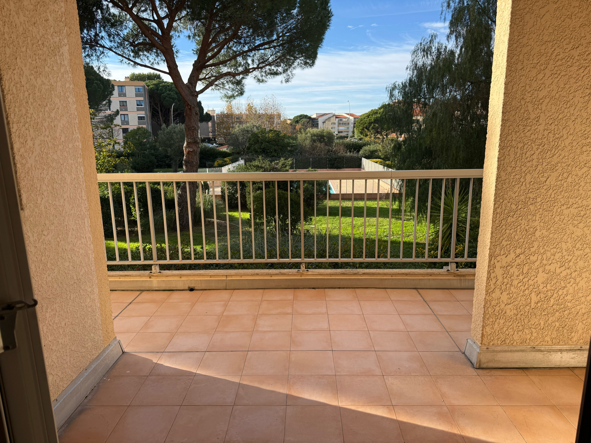 Dans une résidence verdoyante avec piscine et tennis, appartement 2 pièces traversant de 49.65m2 avec terrasse de 15m2 au 1er étage avec ascenseur, vue sur jardin, composé d'une entrée avec placard, un WC indépendant, une cuisine indépendante à aménager et à équiper, un séjour, un coin nuit : chambre sur petite loggia est, salle d'eau. Cave. Parking privatif.