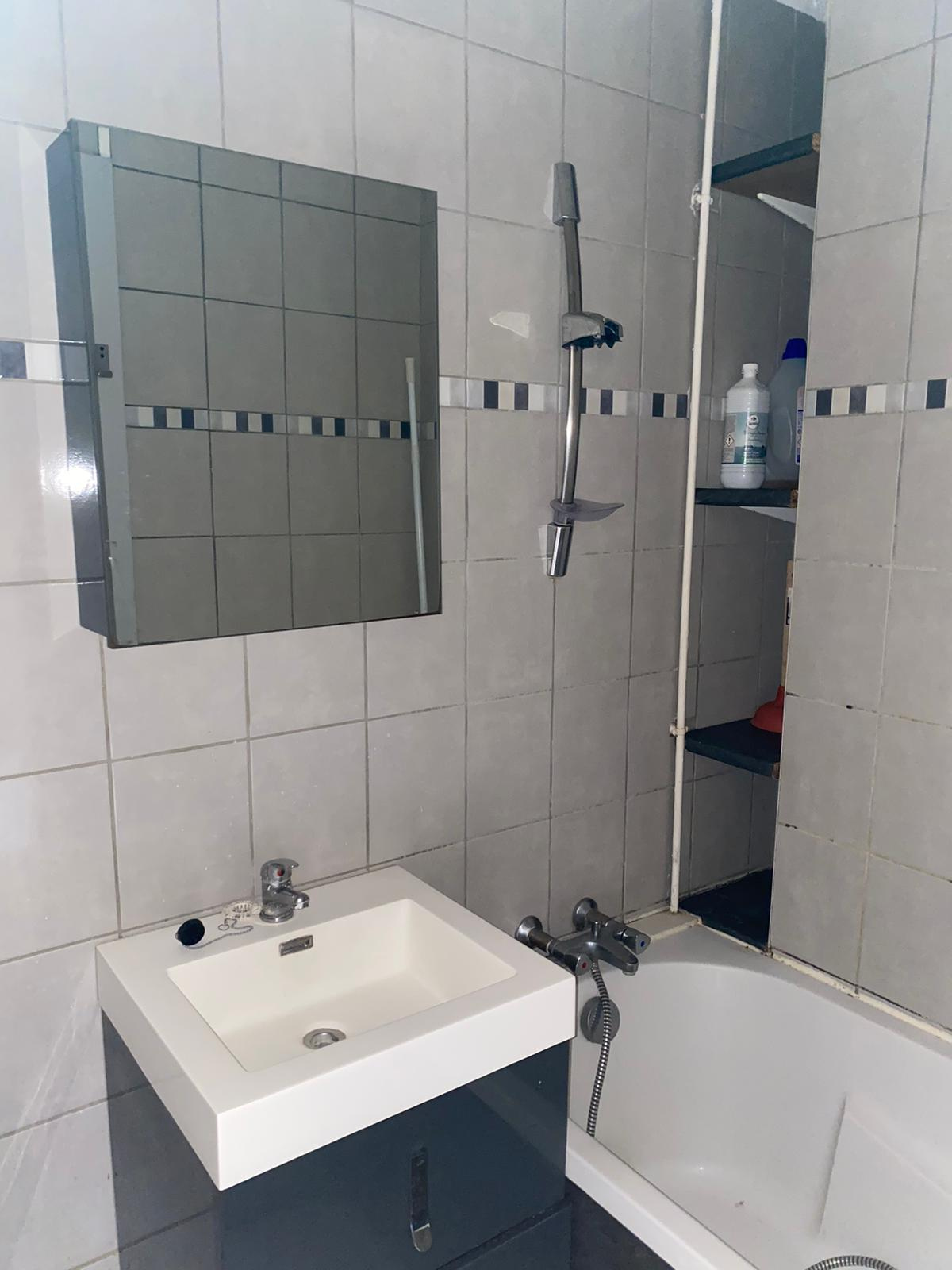 - salle de bain avec baignoire et arrivée d'eau pour positionner la machine à laver, 1 vasque.