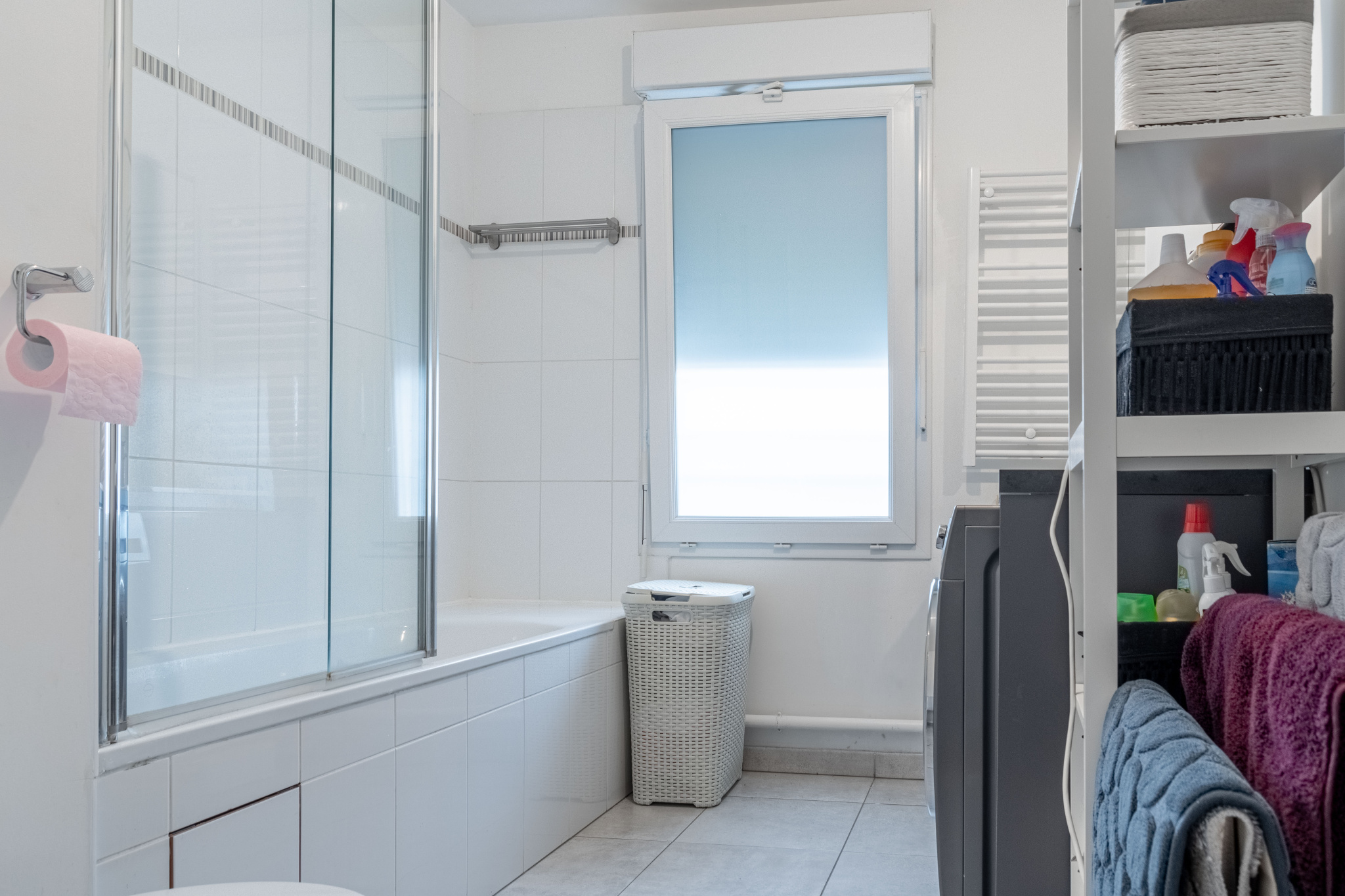 Nous vous proposons, dans un immeuble neuf, un appartement en très bon état de trois pièces, comprenant :