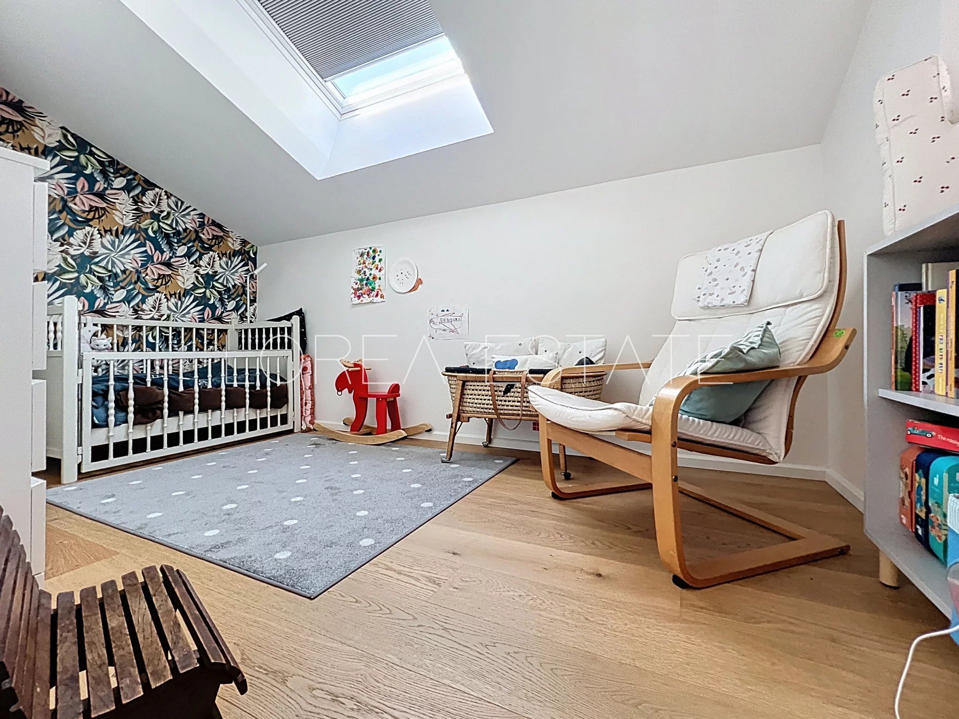 À l’étage, la partie nuit constitue un espace idéal pour la vie de famille. Elle se compose de deux belles chambres, d’une chambre d’enfant, d’un grand dressing aménagé, d’une salle d’eau et de toilettes séparées, alliant confort et fonctionnalité.
