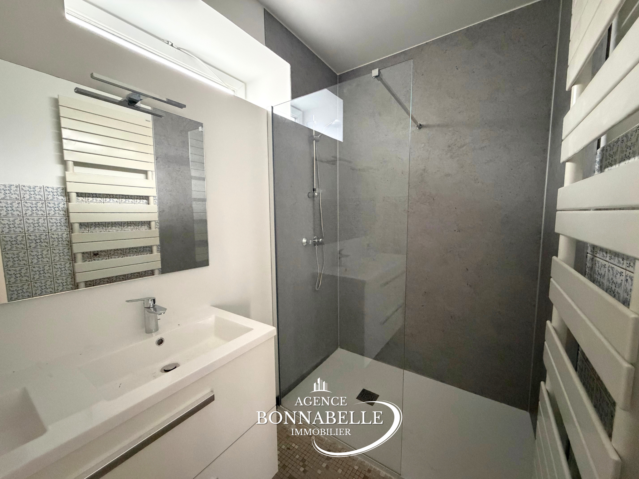 À l'étage noble, deux chambres lumineuses se déploient autour d'un large dégagement équipé de rangements. Un WC indépendant s'y ajoute. L'espace de vie séduit par sa clarté et son élégance ; le séjour, traversant, s'ouvre sur une cuisine modernisée où les matériaux actuels dialoguent harmonieusement avec le charme de l'ancien. Cet ensemble donne accès à un balcon dominant le jardin.