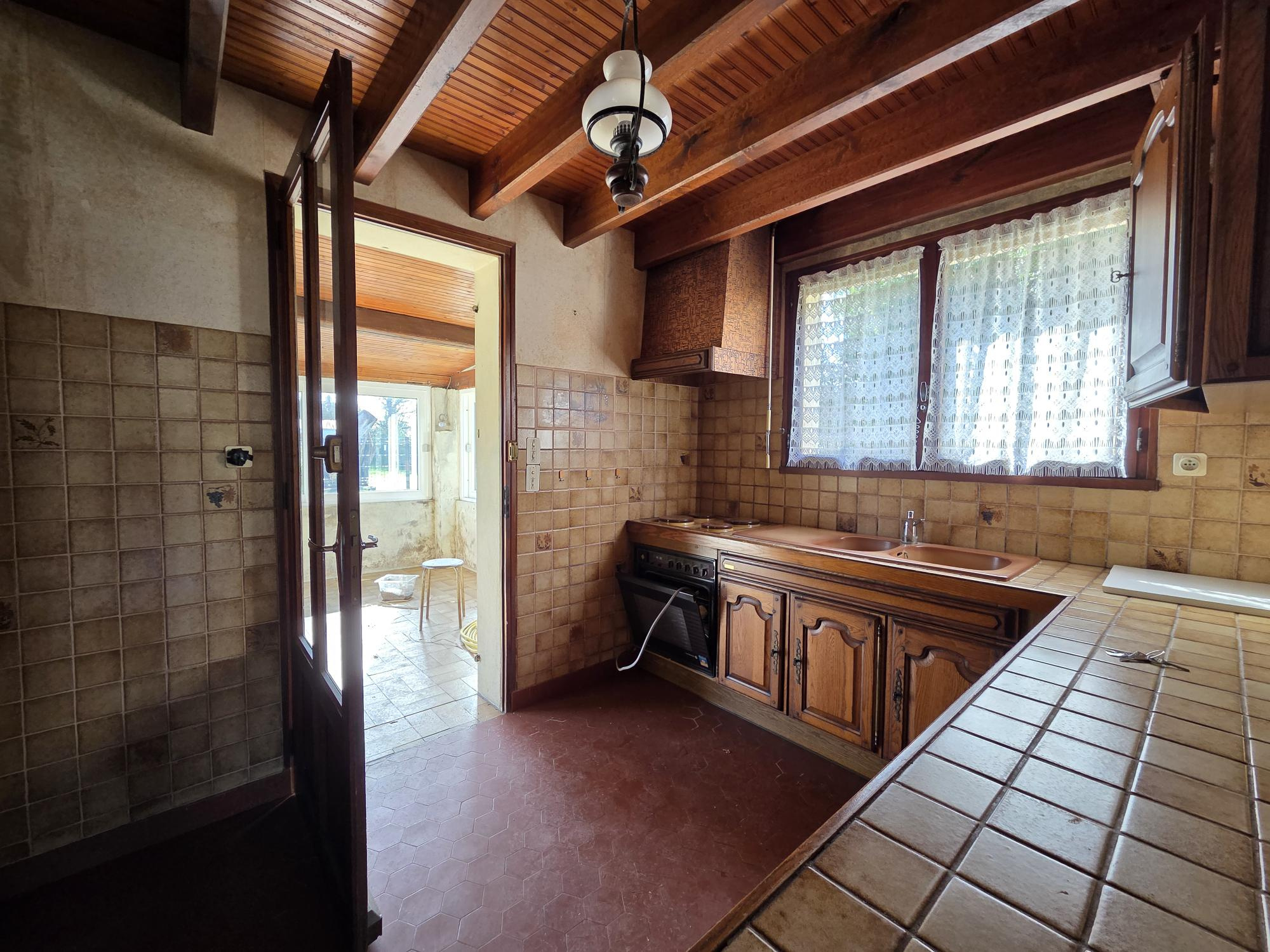 10 minutes des plages, ou de Challans, quartier paisible et boisé pour cette maison bâtie sur environ 700 m2, 72 m2 habitables à rénover, + viabilisée en eau et assainissement.