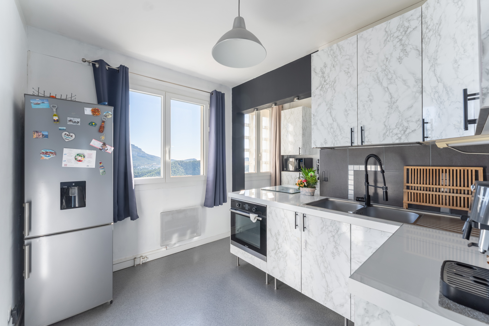 L'appartement propose également une grande cuisine séparée, fonctionnelle. Un dégagement avec rangements mène à la partie nuit, composée de trois chambres spacieuses, une grande salle de bain avec baignoire et douche, un espace buanderie, ainsi qu'un WC séparé.