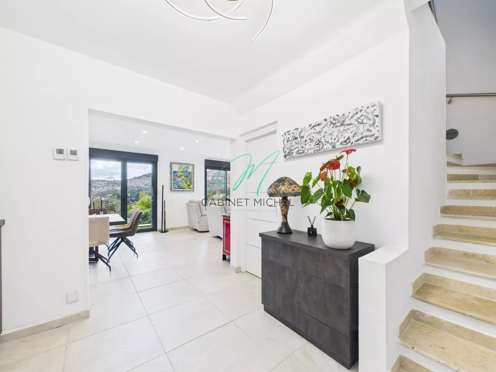 Dès l’entrée, vous découvrirez un vaste séjour baigné de lumière ouvrant sur une terrasse couverte idéale pour prolonger les moments de détente en extérieur ainsi qu'un wc invités et une penderie.
