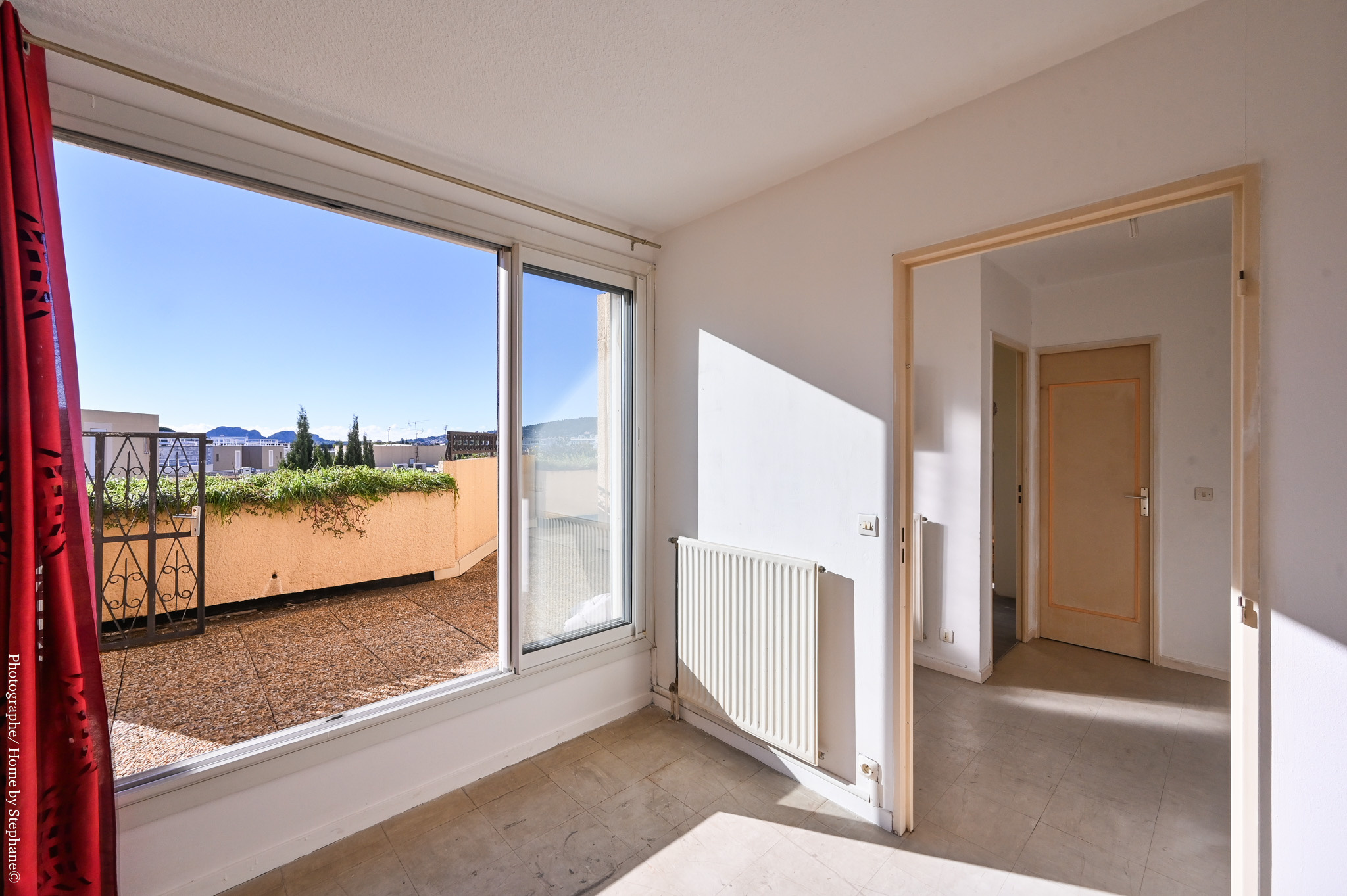 Exclusif, la Comtesse immobilier vous propose résidence les Tourmalines, en dernier étage, exposé plein Sud et bénéficiant d'une magnifique luminosité, un appartement de type 3 composé: d'une entrée avec placard, d'un séjour, d'une cuisine séparée, un WC indépendant, un couloir desservant la partie nuit diposant de deux chambres, une salle de bain et d'un dressing. On aime la vue dégagée de la terrasse donnant à l'intérieur de la résidence et profitant de la vue sur les espaces verts et sur les 3 secs de La Ciotat. Le bien dispose du double vitrage et de volets roulants électriques ( moteurs neufs).