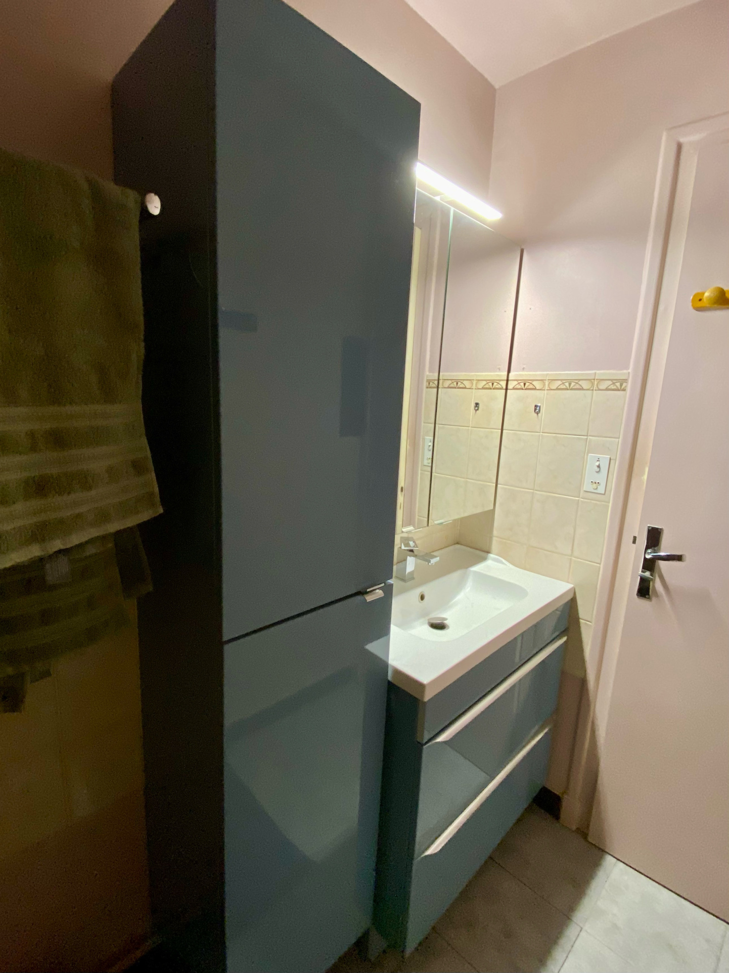 - 1er étage - Entrée, cuisine aménagée, séjour avec balcon, chambre avec rangements, salle de bains, wc séparé