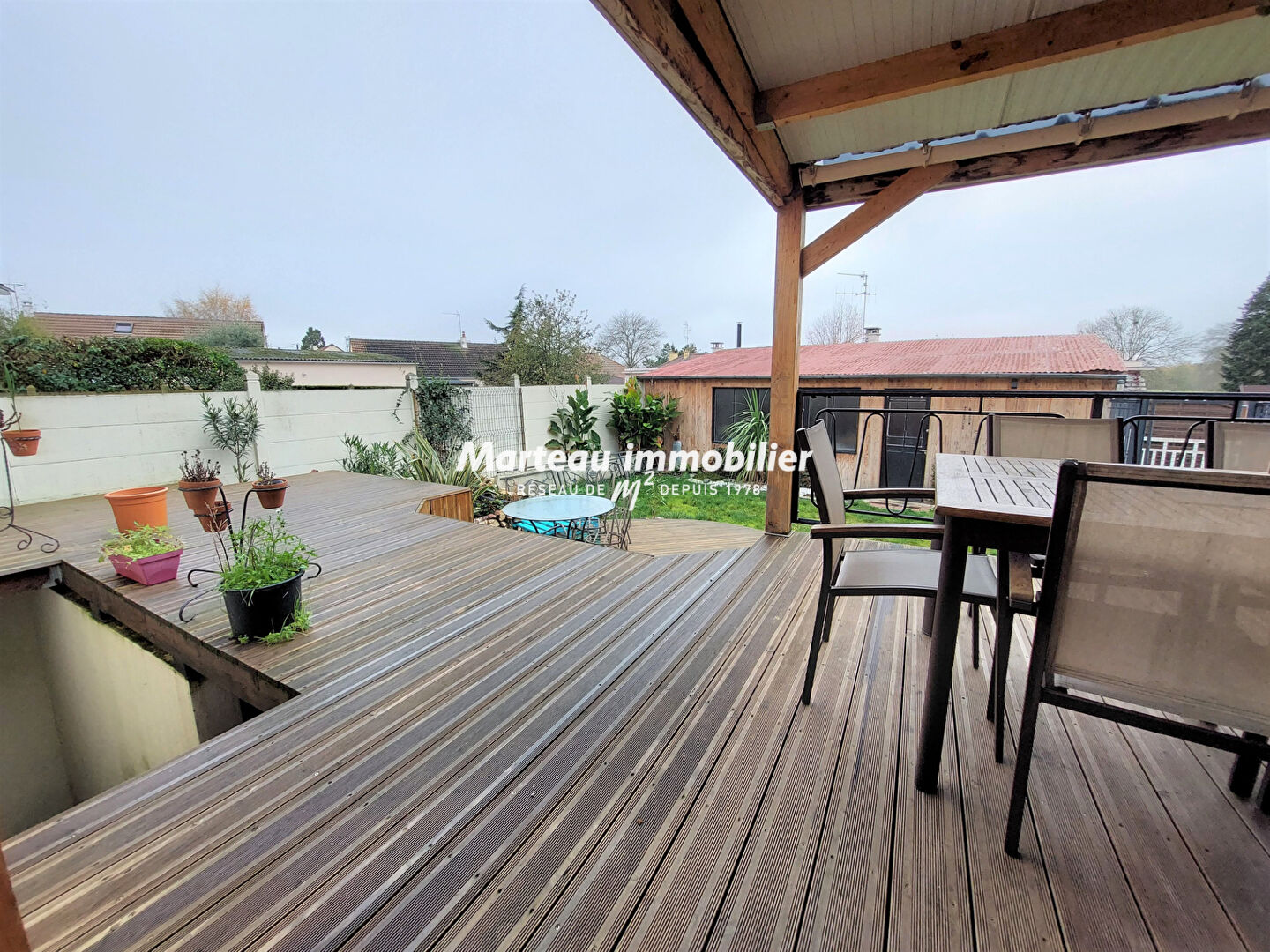 A l'extérieur, une belle terrasse donne sur un jardin agréable.