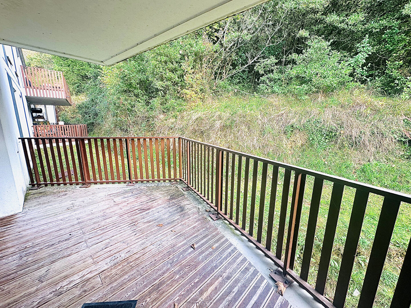 Appartement avec une grande pièce de vie et un coin cuisine, deux chambres avec placard intégré, une salle de bain et WC.. Terrasse spacieuse en partie couverte sans vis à vis. Place de parking.