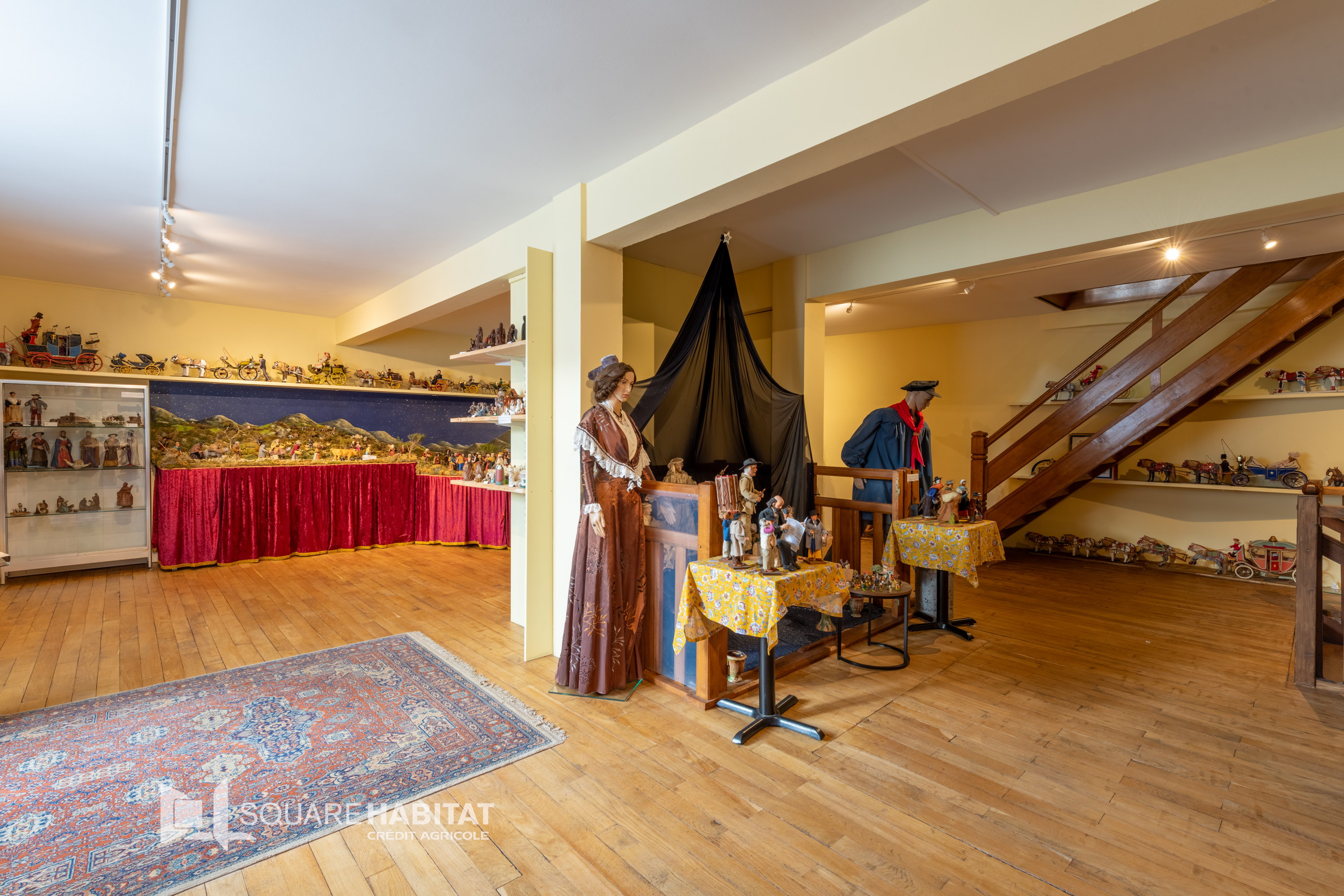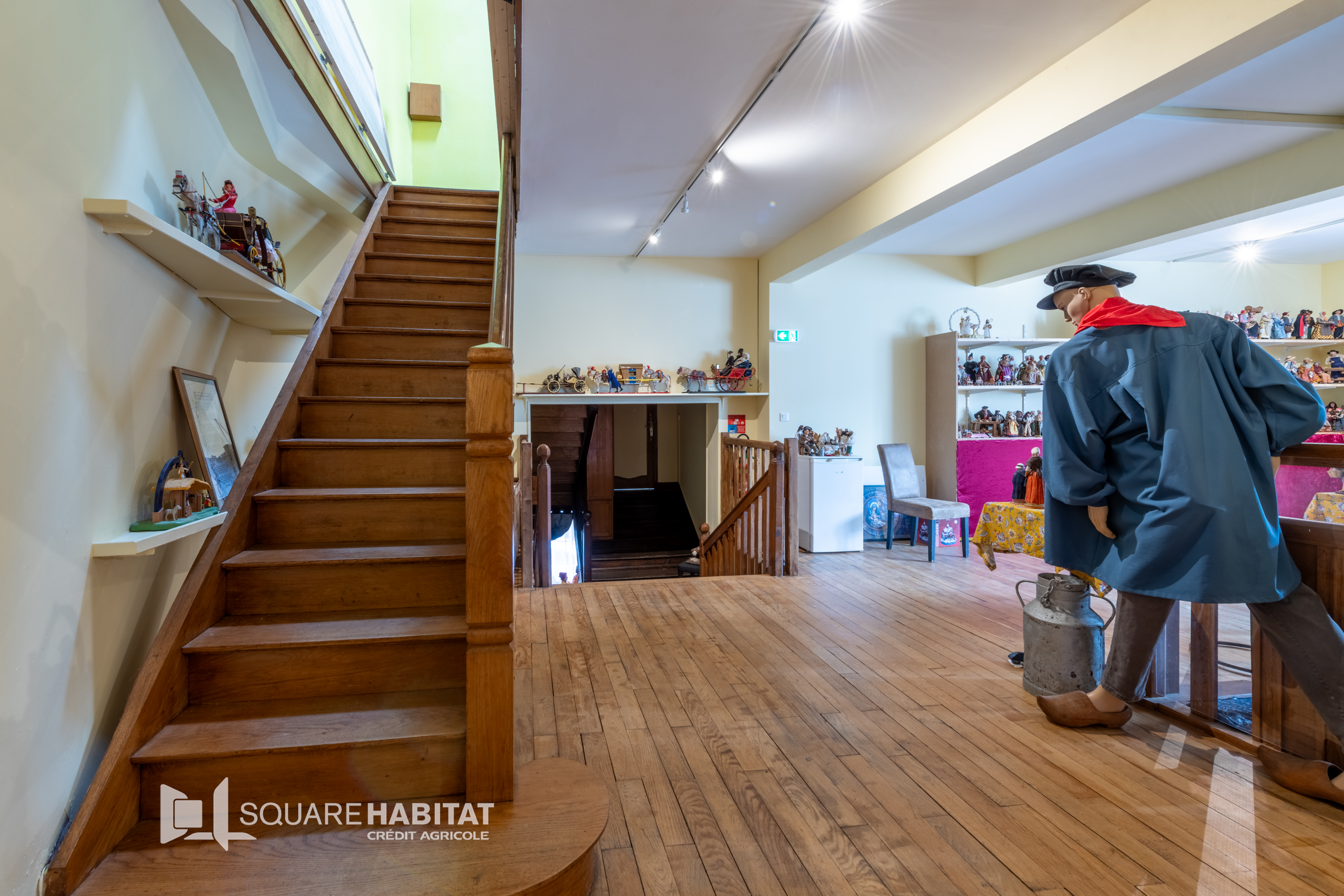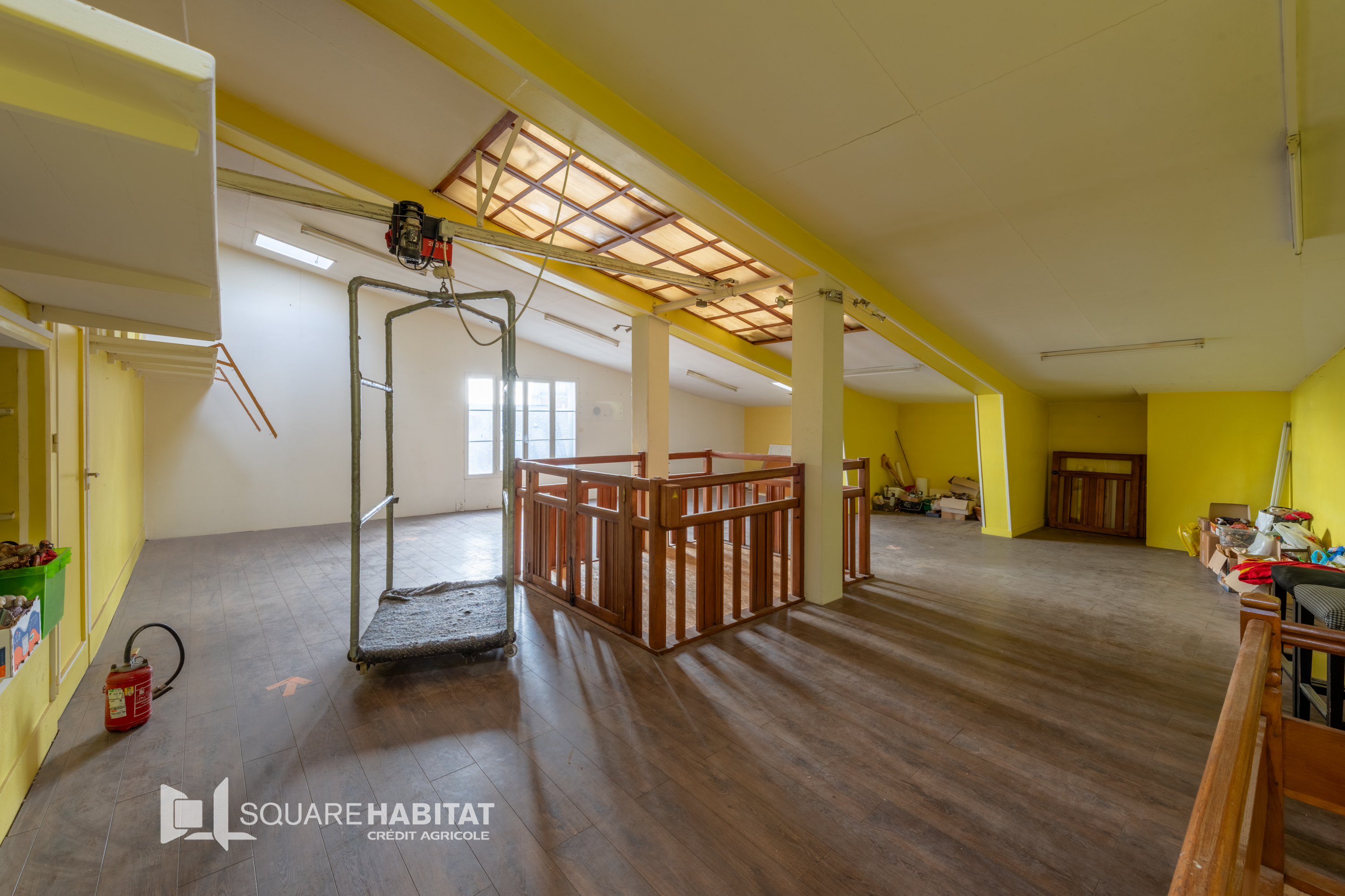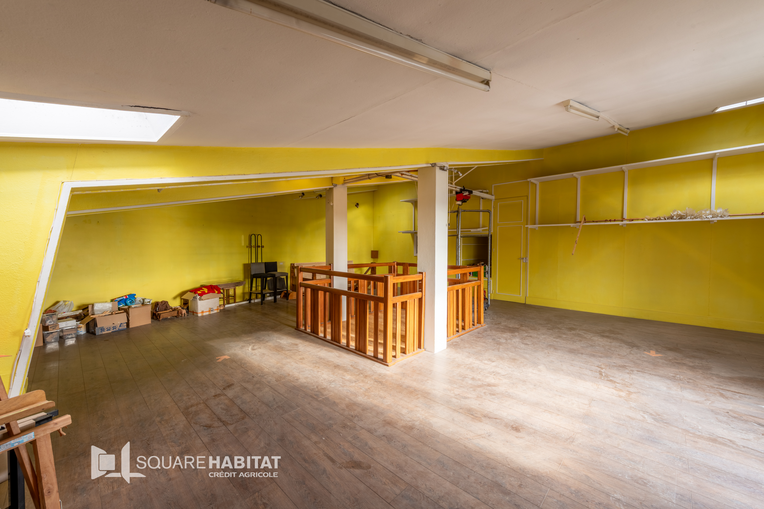 Le rez de chaussée comprend 3 pièces principales entre 48 et 55m², coin cuisine, bureau, WC (PMR) et 3 autres pièces de rangement.