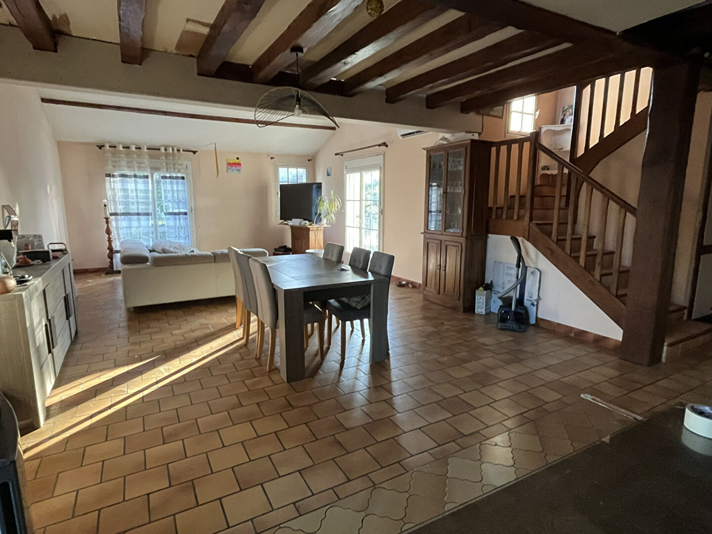 Tifaine vous propose; En exclusivité ; À la sortie de Loudun, sur l'axe Loudun-Thouars, découvrez cette maison familiale d'environ 175 m² habitables offrant de beaux volumes et un excellent potentiel. Elle comprend au rez-de-chaussée une entrée donnant sur une vaste pièce de vie lumineuse de 75 m² avec espace salon, séjour et cuisine ouverte. Un dégagement dessert deux chambres, une salle d'eau, un WC séparé ainsi qu'une buanderie.