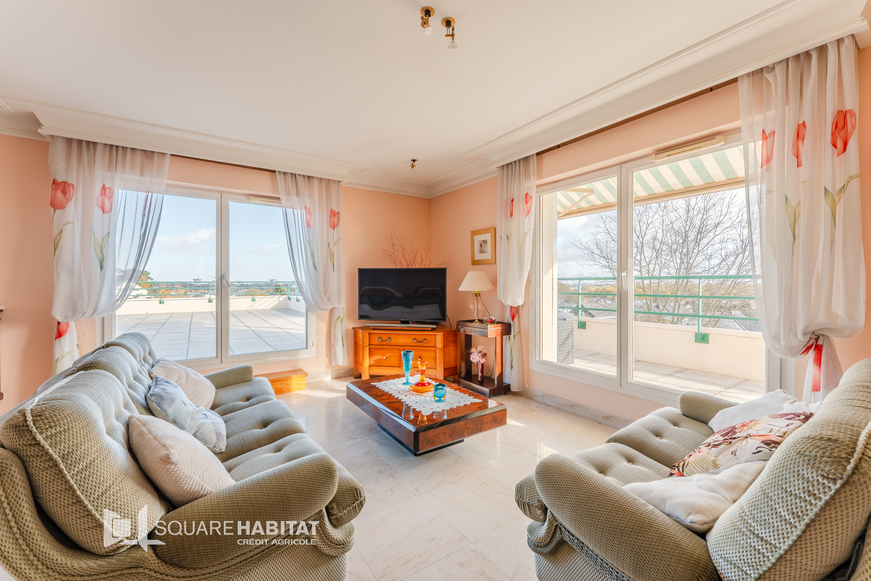 Dès l'entrée, vous serez séduit par un vaste salon-séjour baigné de lumière grâce à son exposition et ouvrant directement sur une terrasse exceptionnelle de 145 m² : un véritable espace de vie supplémentaire idéal pour recevoir, jardiner ou profiter du soleil en toute intimité.