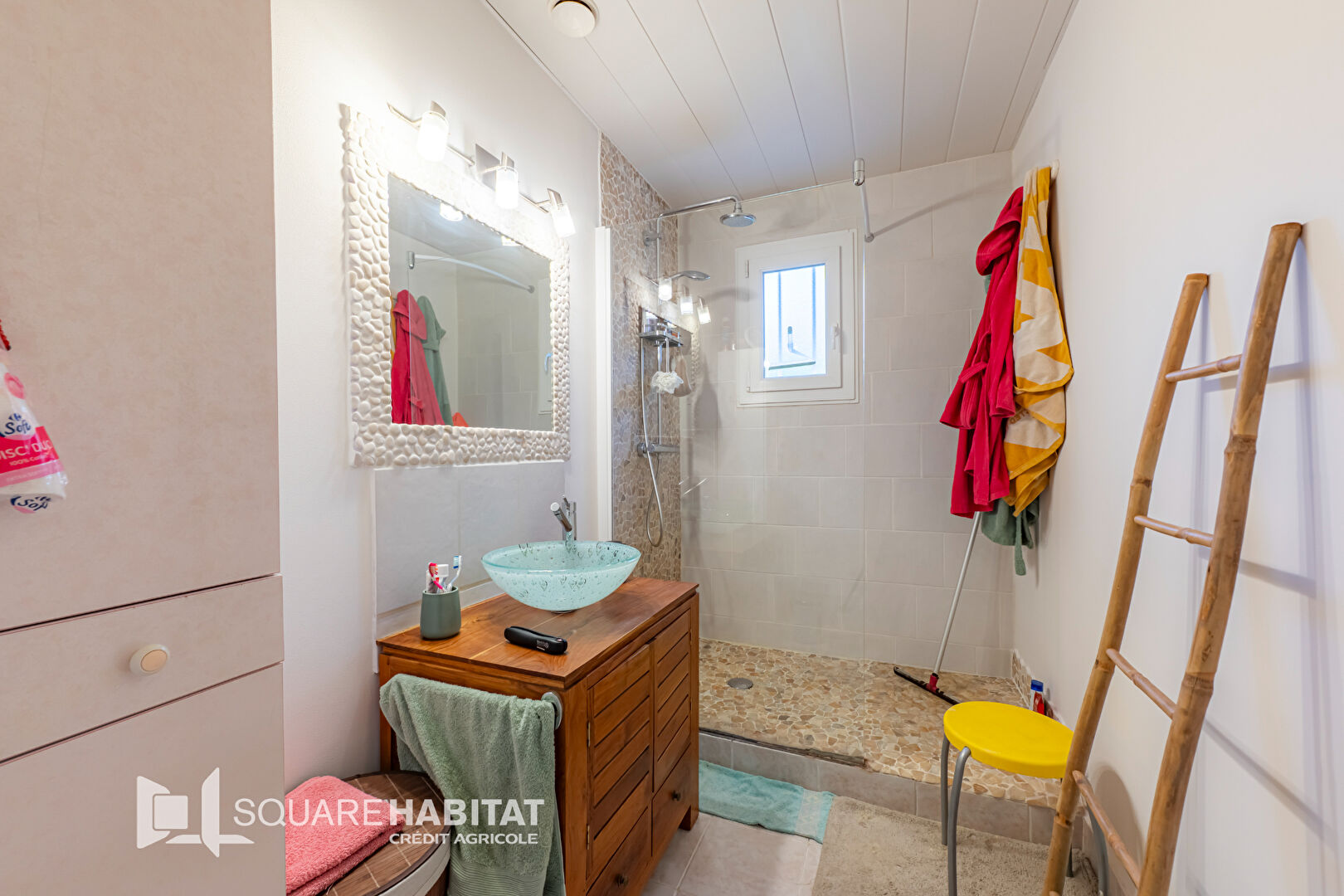 Entièrement rénovée avec goût, elle offre une cuisine moderne équipée, un séjour chaleureux de 25 m² avec poêle à granulés, ouvrant sur une belle terrasse exposée plein sud, idéale pour profiter des beaux jours.