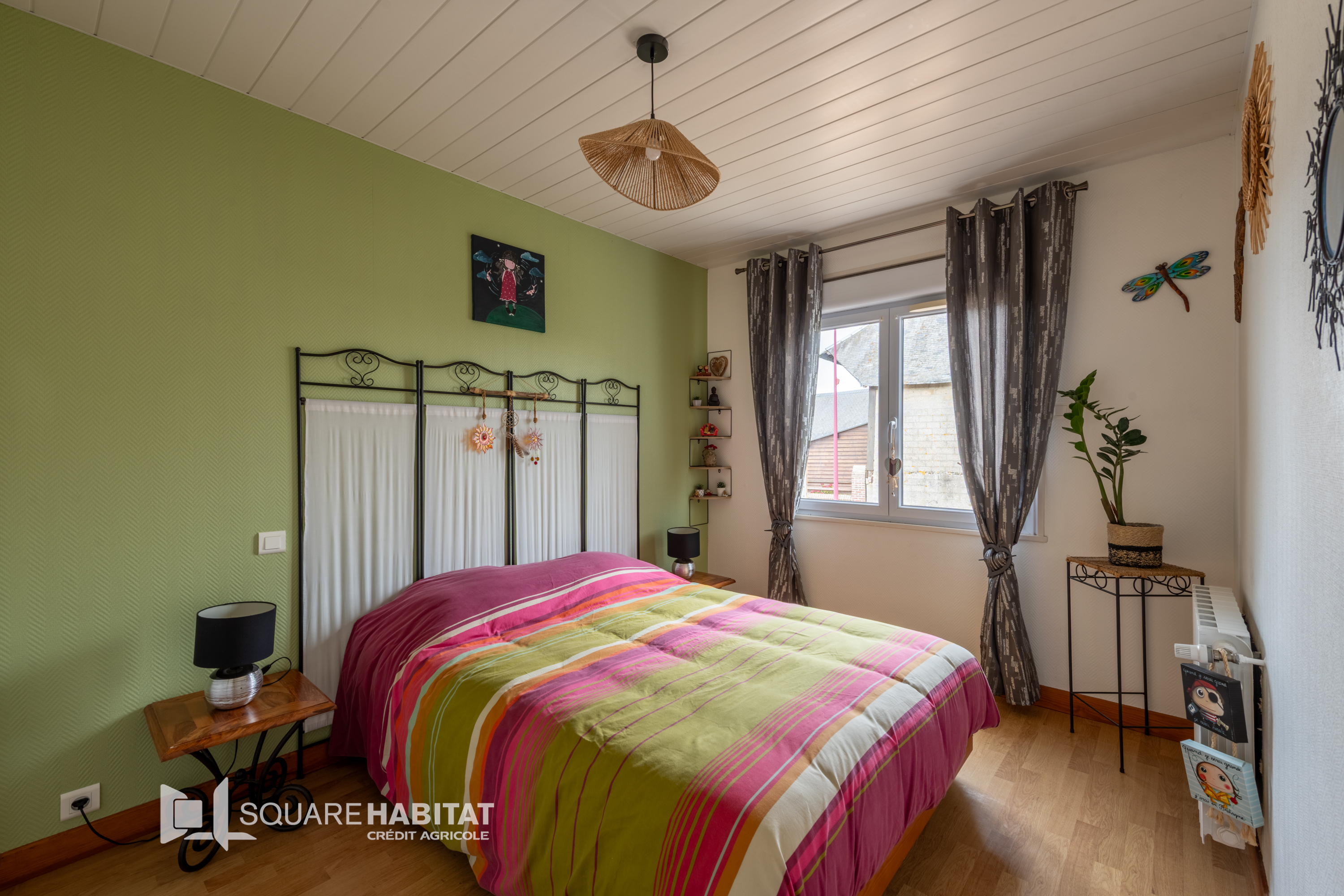 hall d'entrée, séjour - salle à manger, cuisine aménagée et équipée, couloir de dégagement avec placard, trois chambres avec placard, salle d'eau, sanitaire