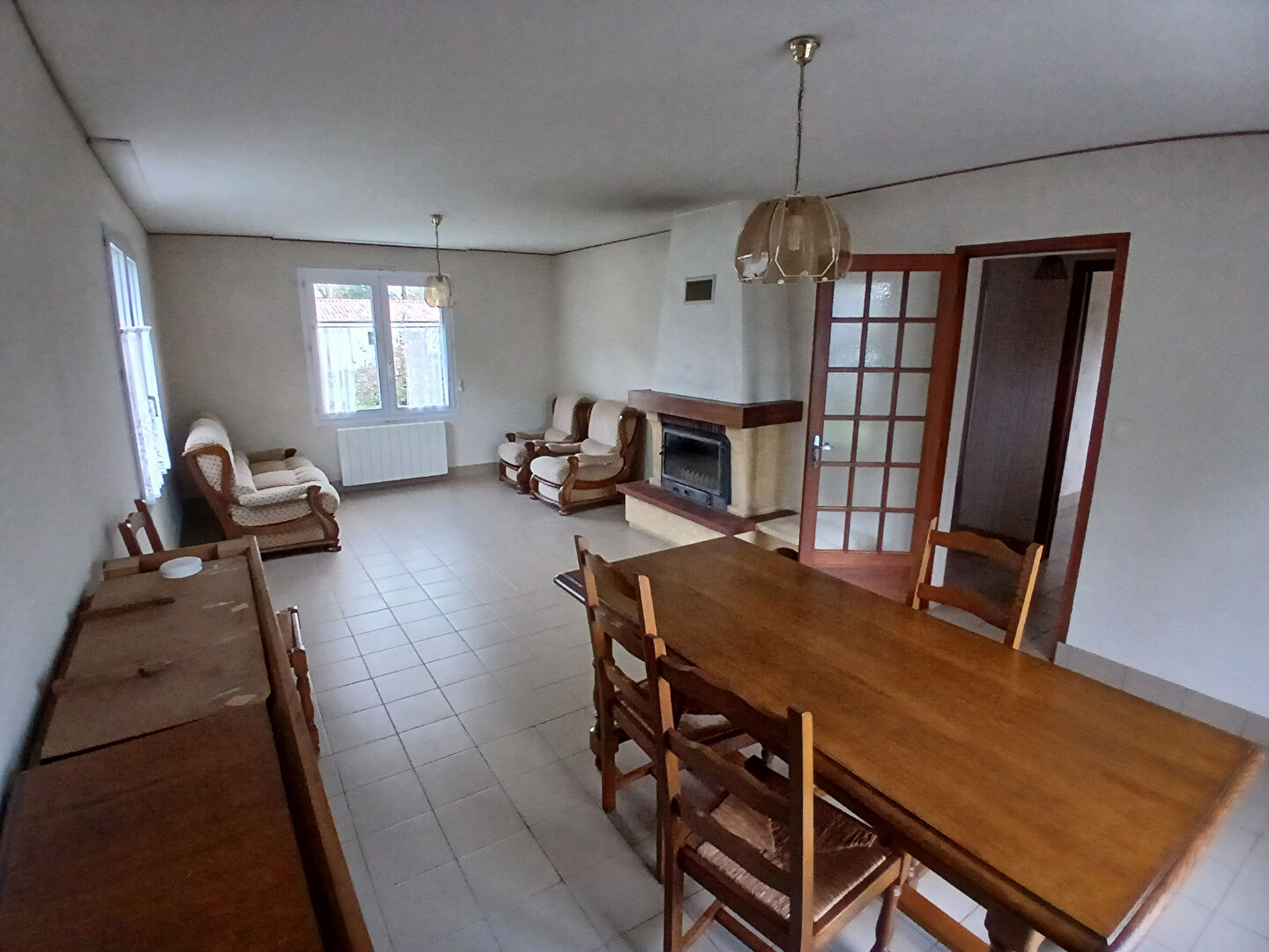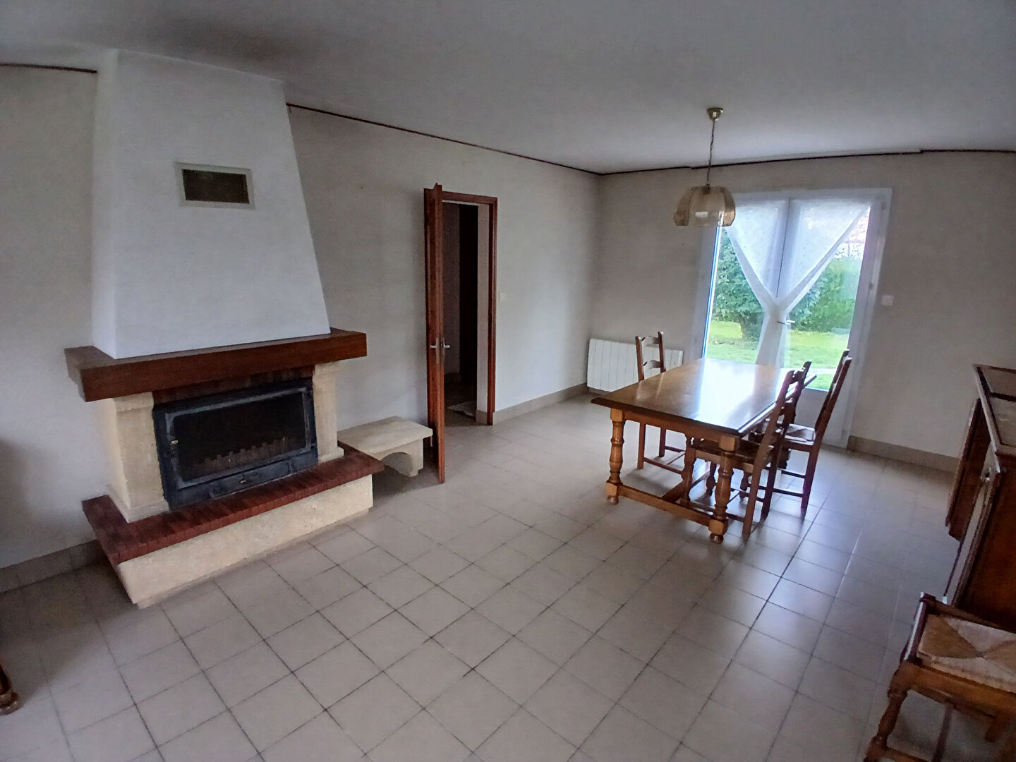 Elle offre un espace de vie lumineux et chaleureux autour d l'insert réunissant salon et séjour, une cuisine aménagée, un cellier pratique, ainsi que deux chambres confortables avec placards, une salle d'eau et un WC séparé.