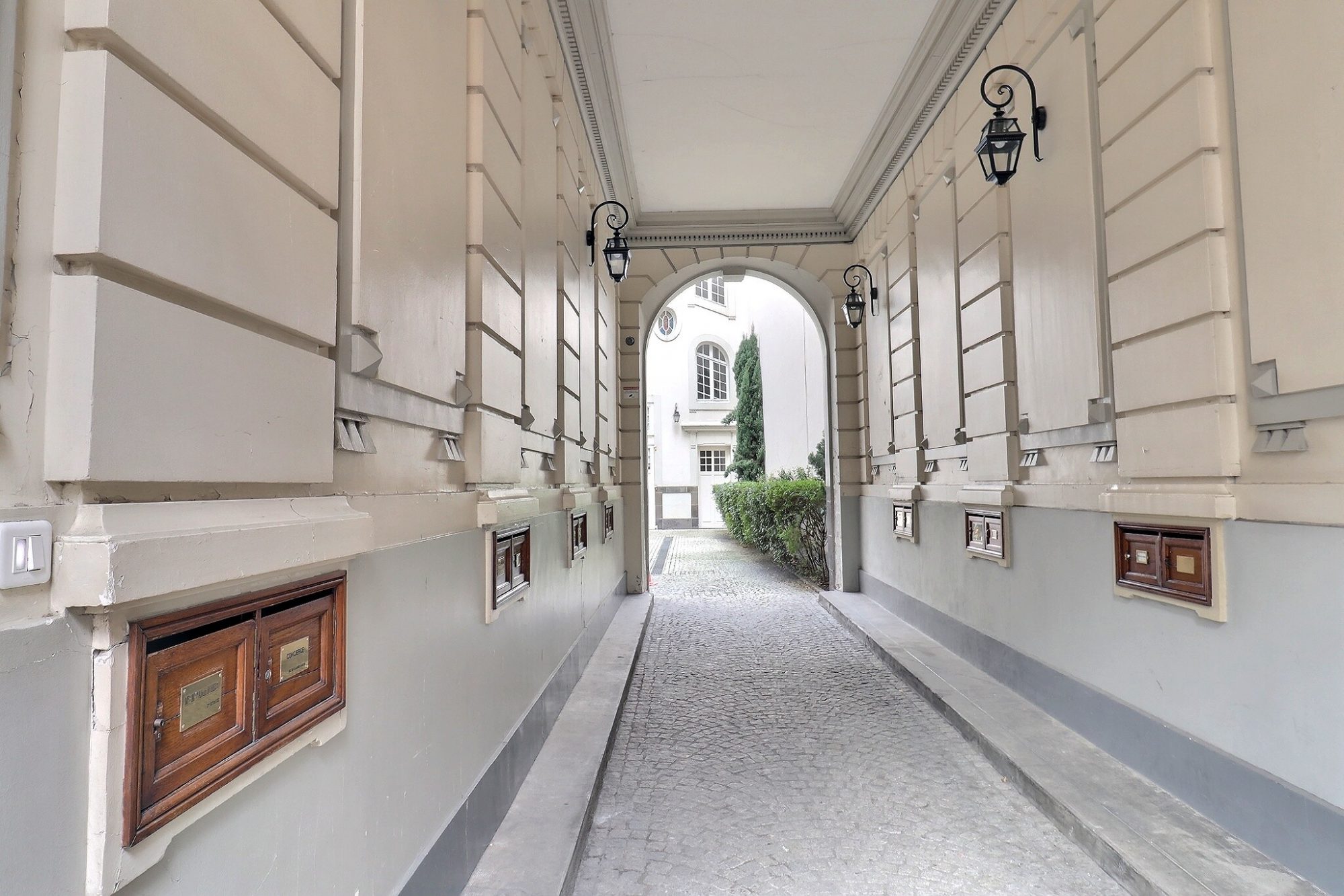Le bien se compose d'une cuisine indépendante, d'un salon, d'une chambre, ainsi que d'un bureau pouvant également faire office de petite chambre d'appoint. L'ensemble est tourné vers la cour, garantissant un environnement calme tout en bénéficiant de la proximité immédiate des commerces et transports.