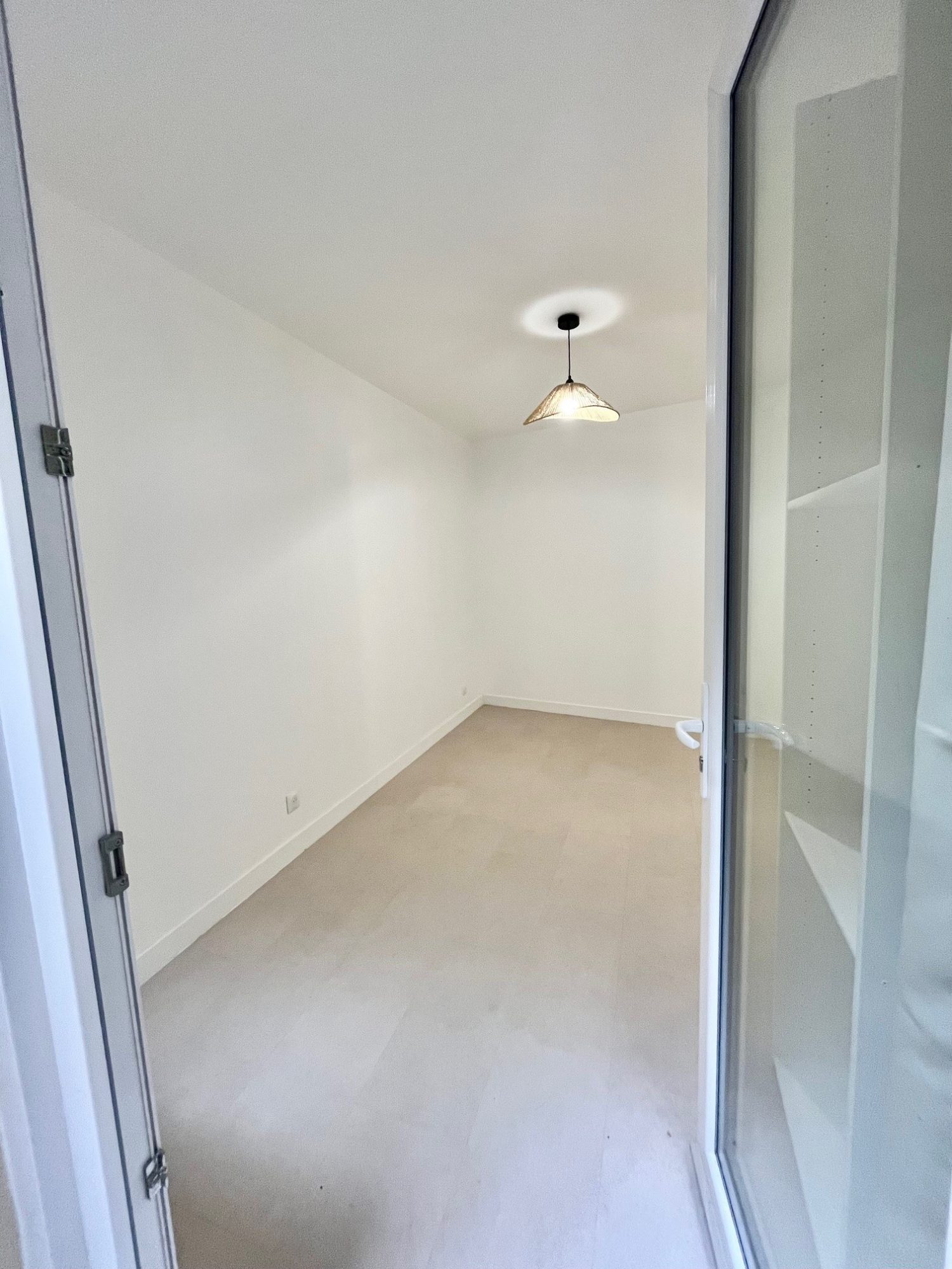 Entrée donnant sur une pièce principale avec coin cuisine