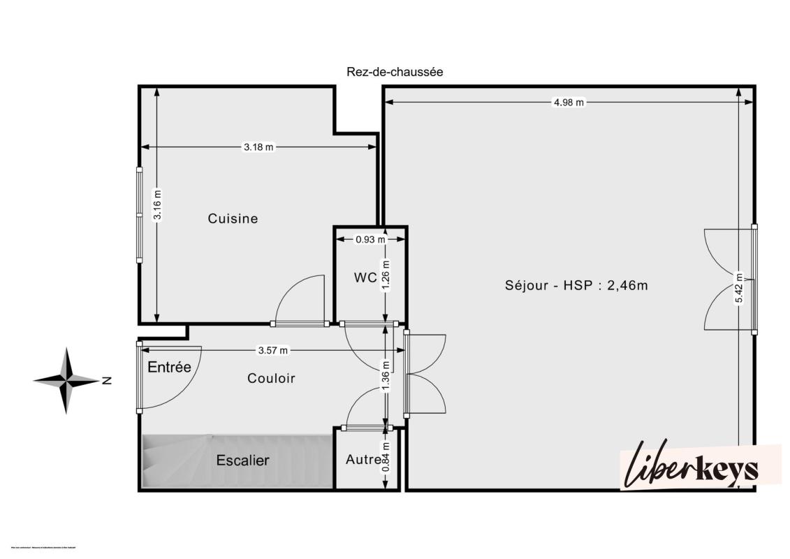 Rez-de-chaussée : séjour traversant lumineux de 27 m², cuisine séparée (ouverture possible), WC