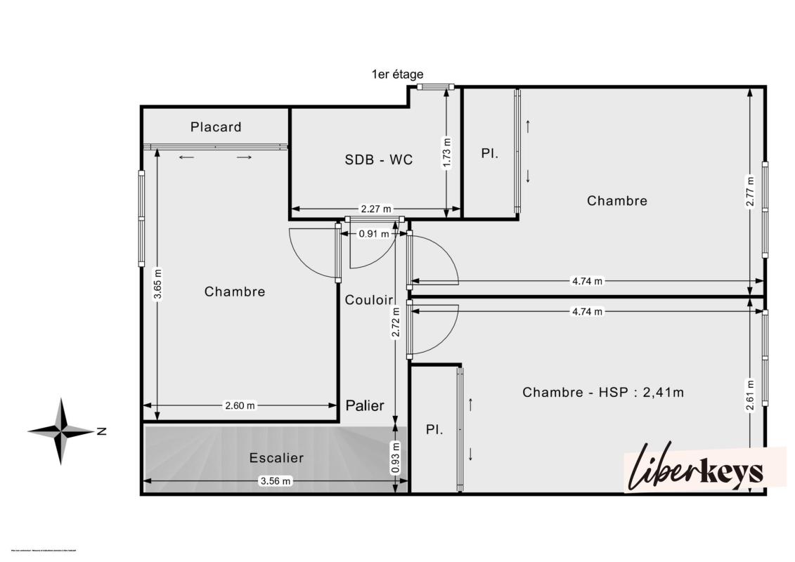 Étage : 3 chambres avec placards de 10 à 12 m² + salle de bains