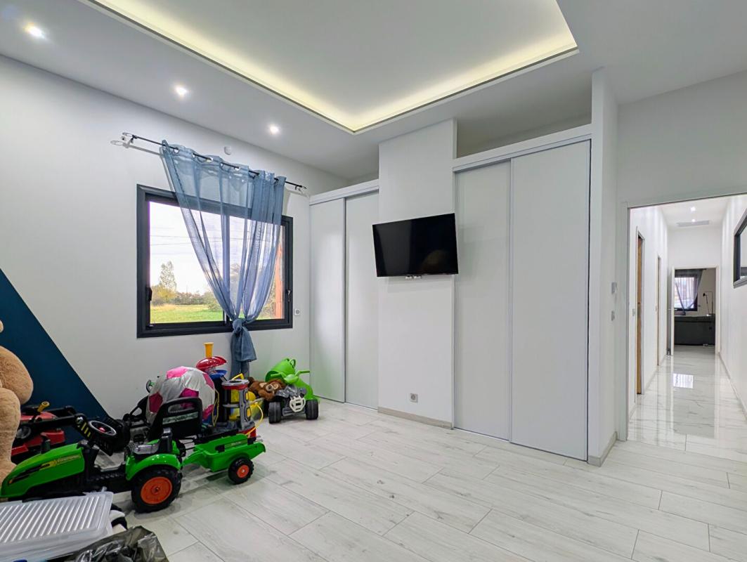 MONDAVEZAN (31220) - Environnement campagne pour cette MAISON CONTEMPORAINE récente de plain-pied aux vastes volumes et aux prestations haut-de-gamme, avec piscine intérieure sur terrain de 3000 m². La maison de 332 m² est composée d'un immense séjour de 105 m² avec cuisine américaine aménagée et équipée, un cellier de 14 m², un wc indépendant, 3 belles chambres avec placards de 22 m², 22 m² et 12 m², un grand dressing de 13 m² (ou 4ème chambre), 2 salles de douches avec wc de 16m² et 9,5 m². La PISCINE INTERIEURE, avec terrasse, verrière de toit et grandes baies à galandage, est la pièce centrale de la maison. Vaste sous-sol d'environ 120 m². Terrain de 3000 m² avec vue Pyrénées, garage indépendant de 64 m². Double système de chauffage : pompe à chaleur avec plancher chauffant et climatisation réversible gainable. Domotique, alarme, fibre optique. DPE : A (37kWh/m²/an) - GES : A (1kgCo²/m²/an) - Montant estimé des dépenses annuelles d'énergie pour un usage standard entre 970 euros et 1380 euros. Prix moyens des énergies indexés sur les années 2021, 2022, 2023 (abonnements compris) conformément à l'arrêté du 31 mars 2021 en vigueur lors de l'établissement du DPE.