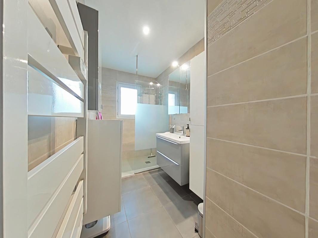 Elle se compose d'une pièce de vie lumineuse de 60 m² avec cheminée et d'une cuisine ouverte aménagée et équipée ainsi qu'une buanderie/cellier, pouvant être transformée en quatrième chambre selon vos besoins.