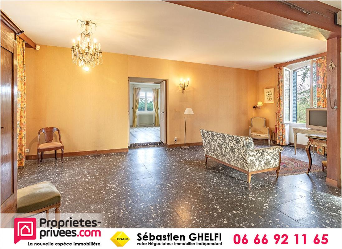 beau salon séjour avec cheminée donnant sur le parc- grande salle à manger, cuisine donnant sur le jardin- 6 chambres, bureau, salle de bain, salle d'eau -3 WC, atelier, cave, garage, appentis et dépendances sur beau parc arboré de 3600 m².
