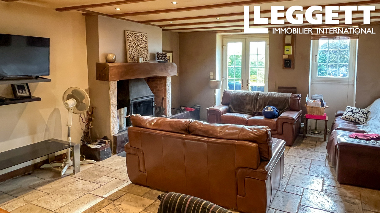 Au rez-de-chaussée, vous découvrirez une superbe pièce de vie de 42 m² comprenant cuisine ouverte, salon et salle à manger, équipée d'un poêle à bois 11 kW. Une grande entrée avec escalier menant à l'étage dessert également un WC, une buanderie et l'accès à la grange.
