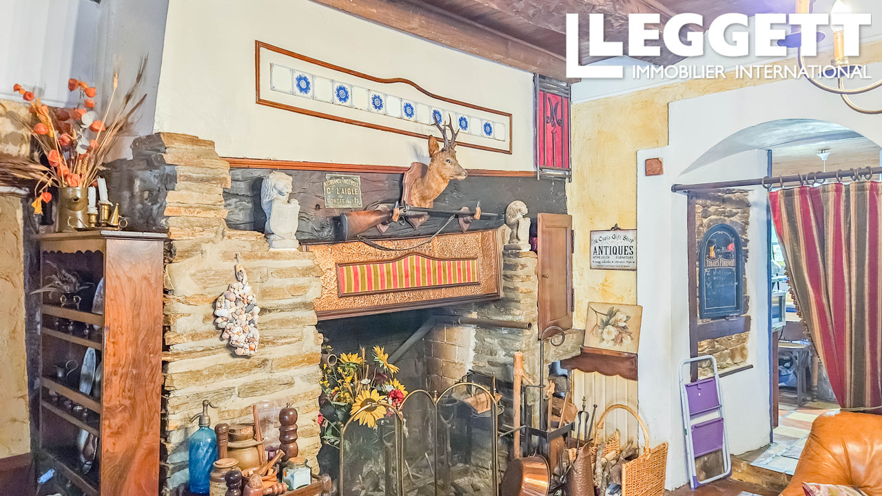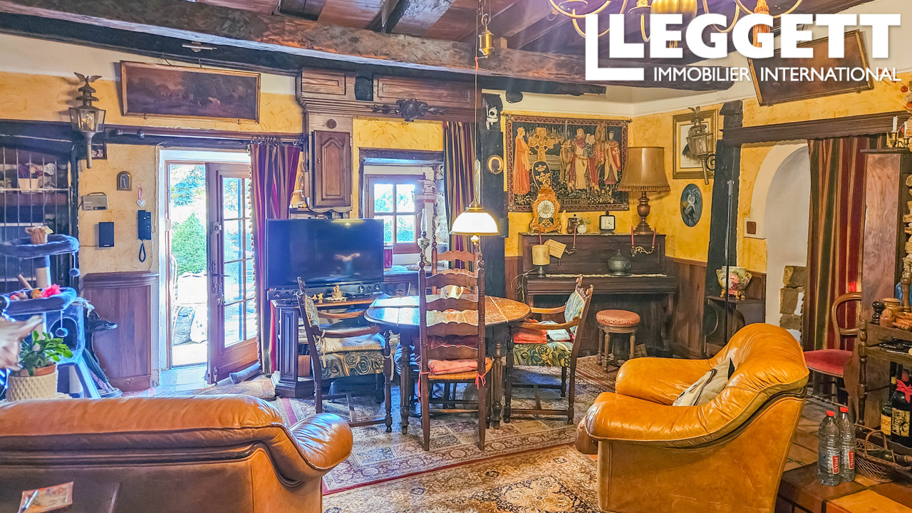 A41059RYS87 - La propriété dégage une atmosphère chaleureuse et authentique, notamment grâce à un beau salon agrémenté d'une grande cheminée de caractère. La résidence principale comprend quatre chambres, une salle à manger séparée et un bureau. Deux cuisines sont actuellement présentes.